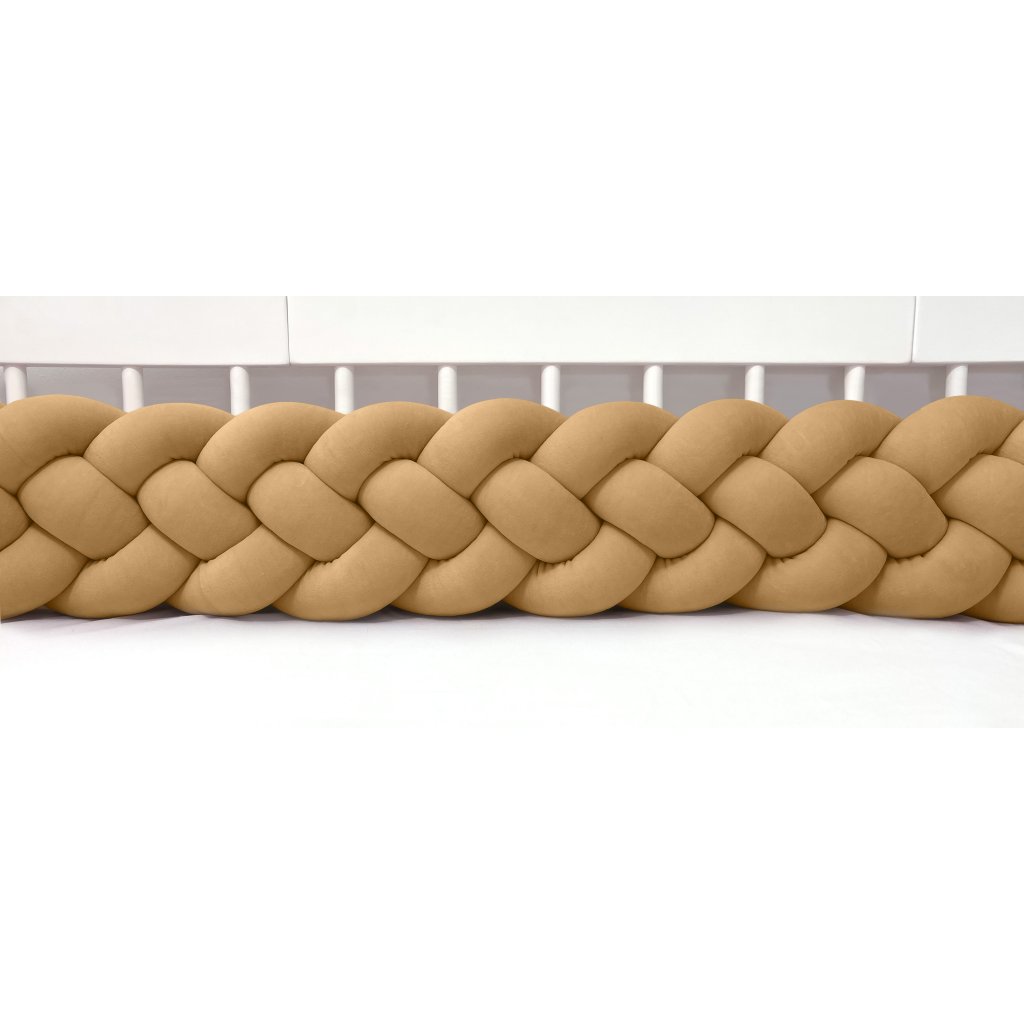 Plyšový mantinel do postieľky - štvoritý pletenec škoricový