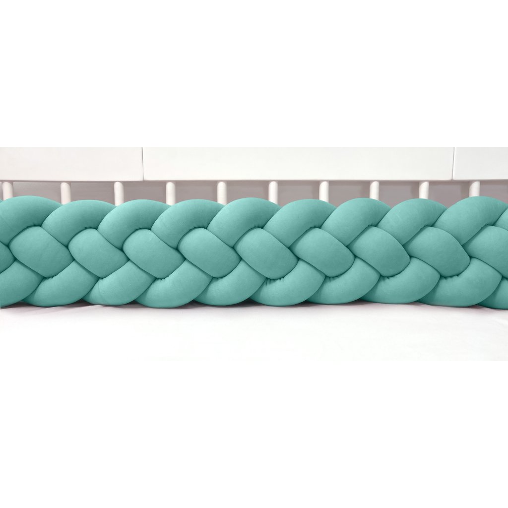 Plyšový ochranný zapletaný mantinel - pletenec štvoritý slúži ako ochranca vášho dieťatka v postieľke a zároveň ako štýlový doplnok v detskej izbe. Pletenec má sadu ozdobných stúh na pripevnenie. Výška cca 20 cm, hrúbka cca 9 cm. Mantinel je dostupný v rôznych dĺžkach (od 120 cm do 400 cm). Všetky 4 pramene sú vyrobené z kvalitného Prémium bavlneného velúru (certifikát Oeko Tex Standard 100) a ručne spletené do vrkoča. Záruka najvyššej kvality – 100% Handmade. Farba: tmavá mäta, číslo vo vzorkovníku: 29.