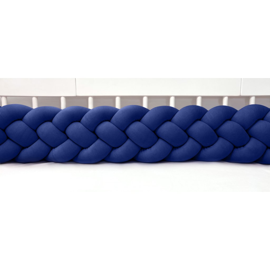 Plyšový mantinel do postieľky - štvoritý pletenec tmavomodrý