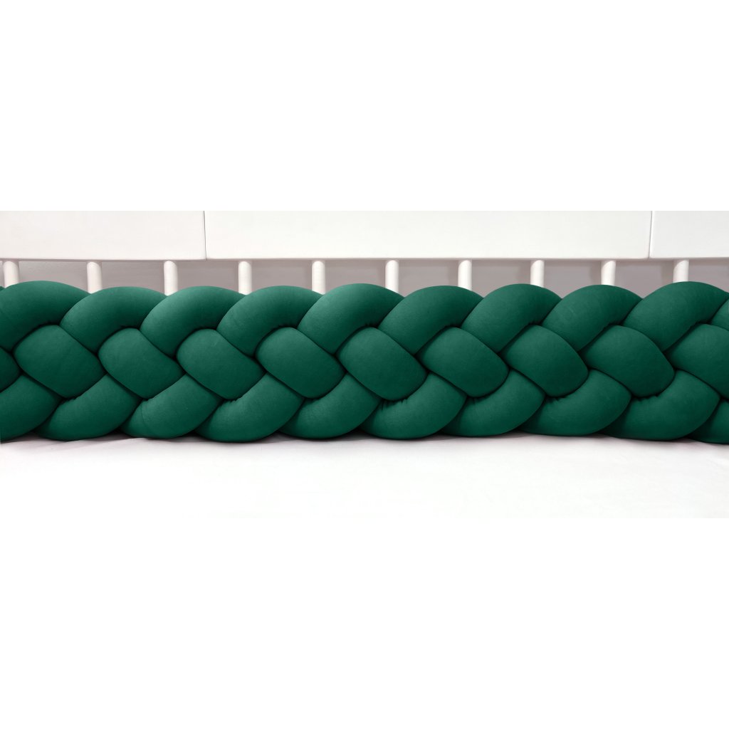 Plyšový mantinel do postieľky - štvoritý pletenec tmavozelený