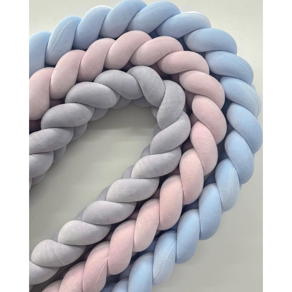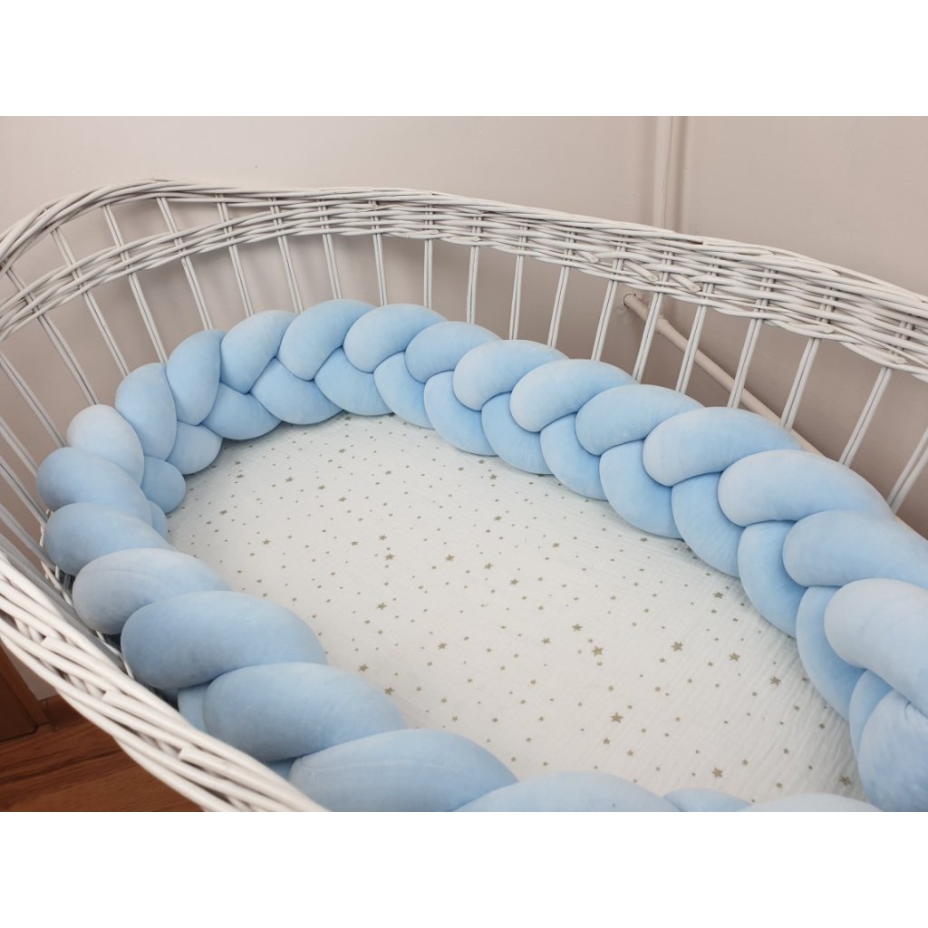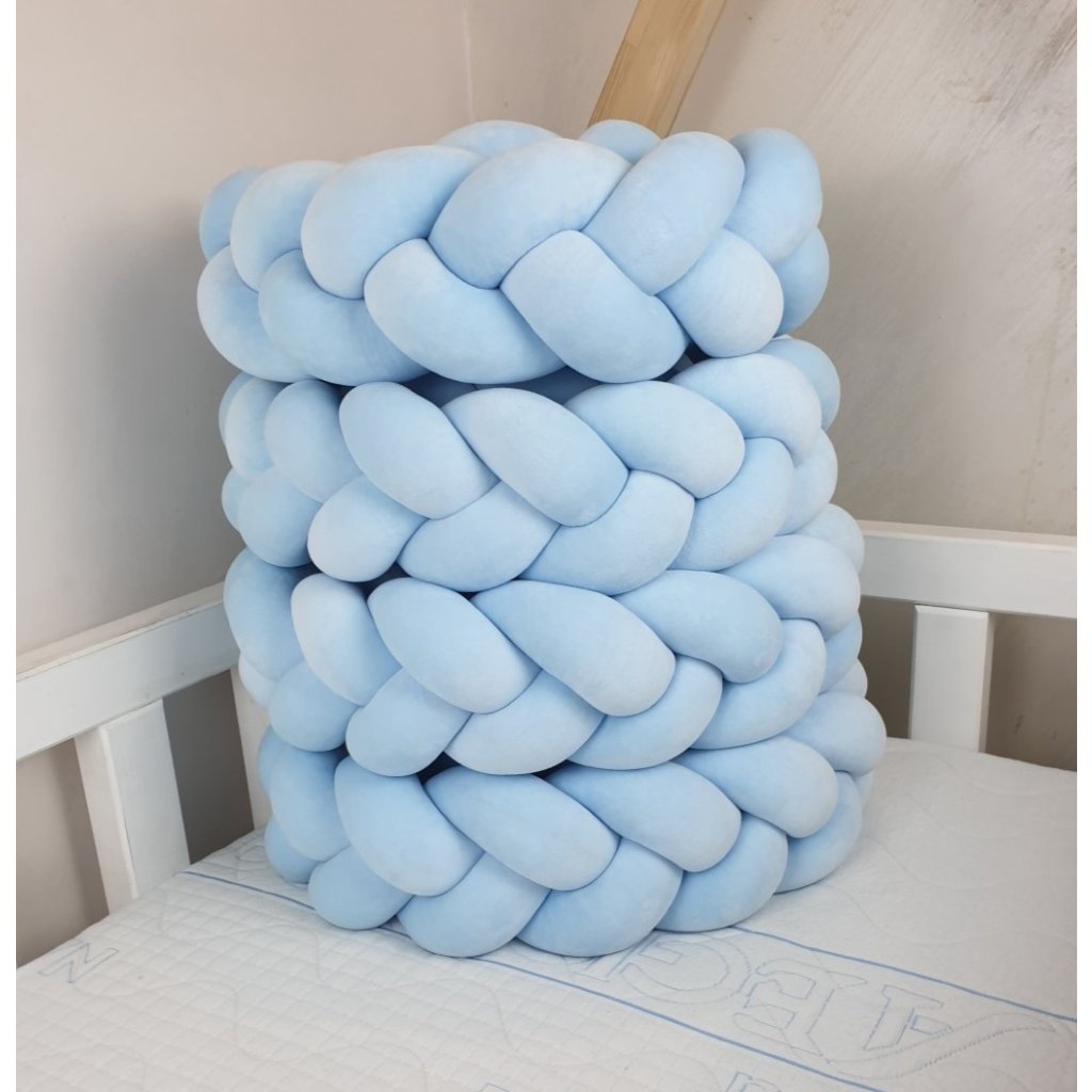 Plyšový mantinel do postieľky - trojitý pletenec bledomodrý