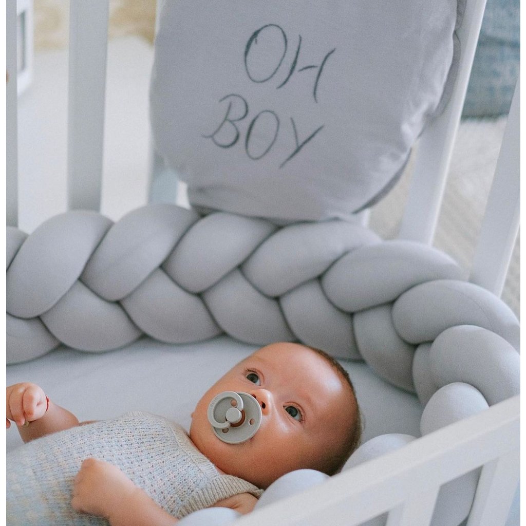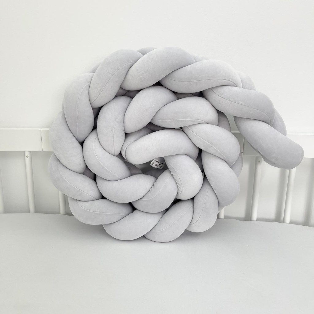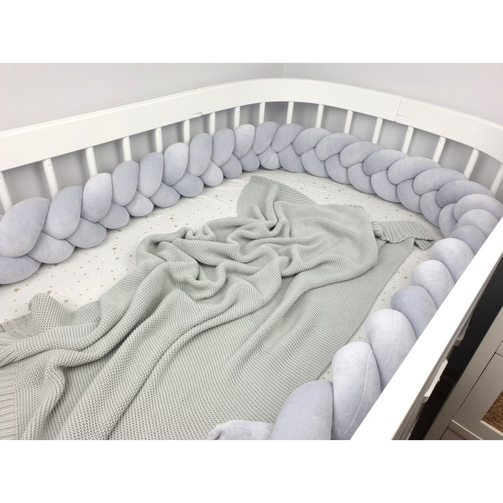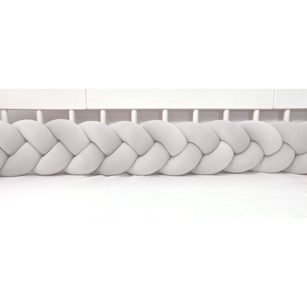 Plyšový mantinel do postieľky - trojitý pletenec bledošedý