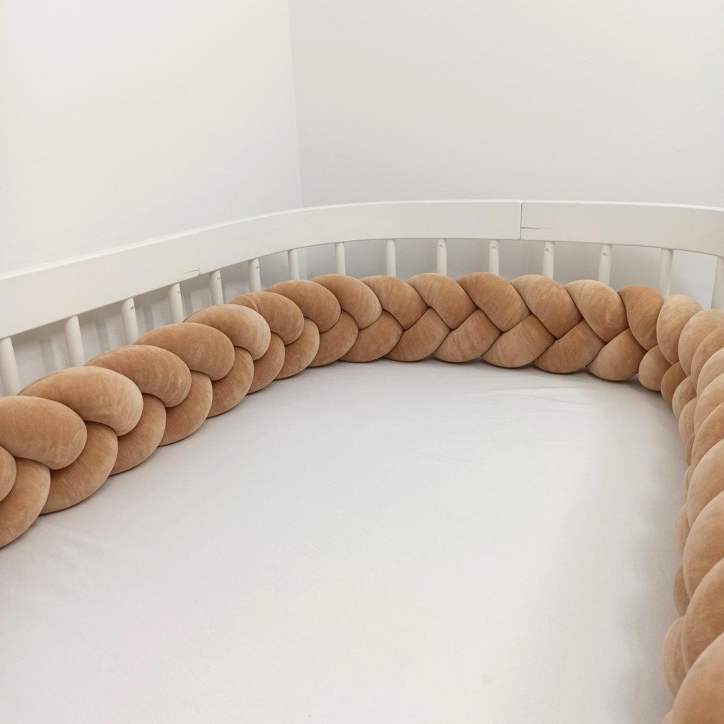 Plyšový mantinel do postieľky - trojitý pletenec karamelový