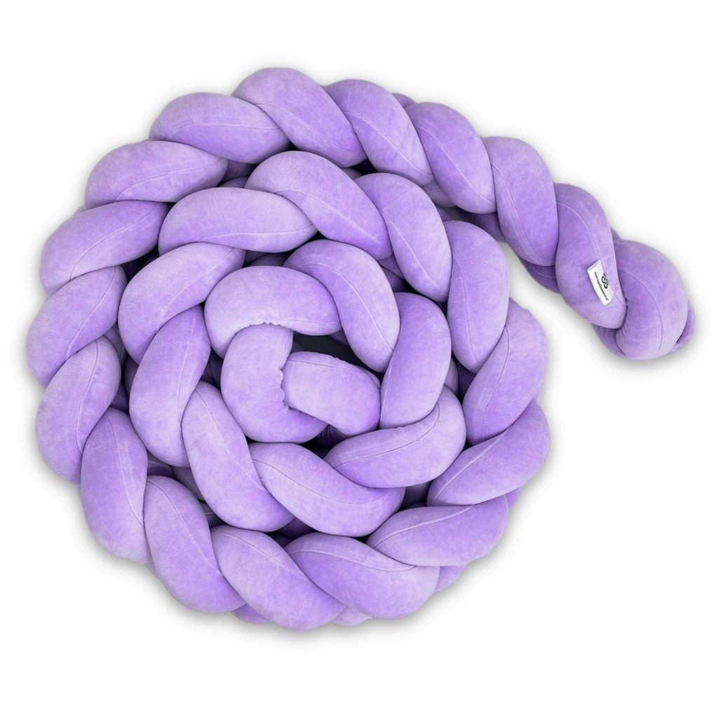 Plyšový mantinel do postieľky - trojitý pletenec levanduľový