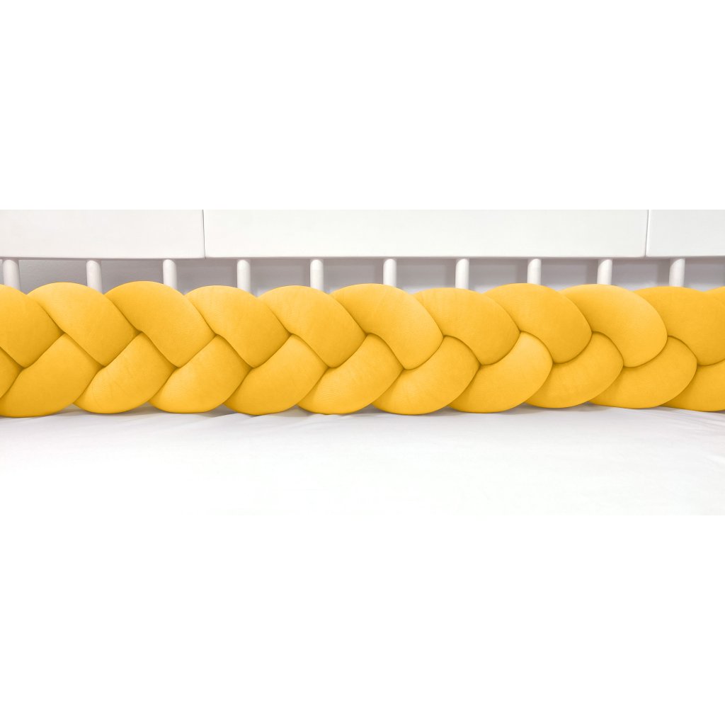 Plyšový ochranný zapletaný mantinel - pletenec trojitý slúži ako ochranca vášho dieťatka v postieľke a zároveň ako štýlový doplnok v detskej izbe. Pletenec má sadu ozdobných stúh na pripevnenie. Výška cca 15 cm, hrúbka cca 6 cm. Mantinel je dostupný v rôznych dĺžkach (od 120 cm do 400 cm). Všetky 3 pramene sú vyrobené z kvalitného Prémium bavlneného velúru (certifikát Oeko Tex Standard 100) a ručne spletené do vrkoča. Záruka najvyššej kvality – 100% Handmade. Farba: medová, číslo vo vzorkovníku: 04.