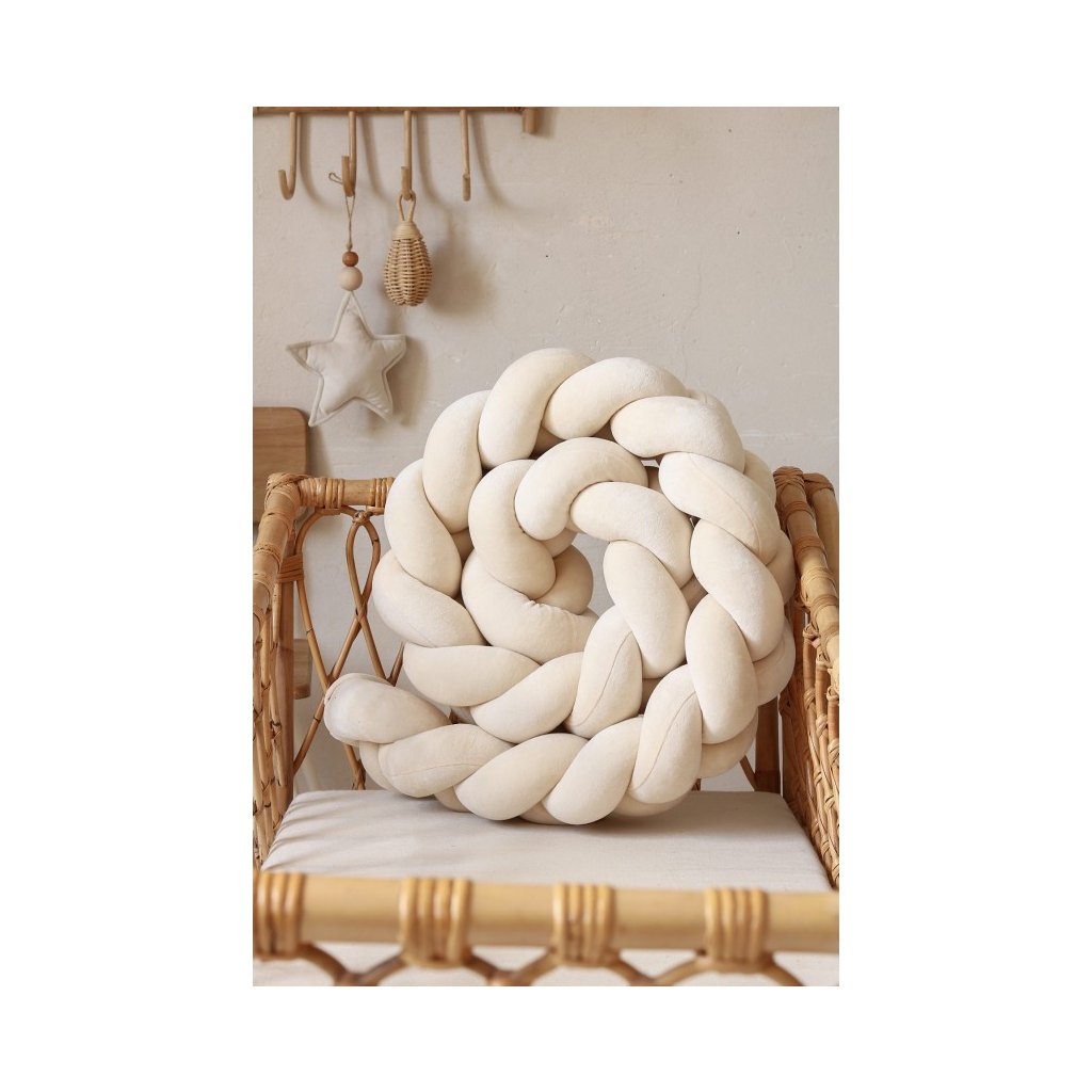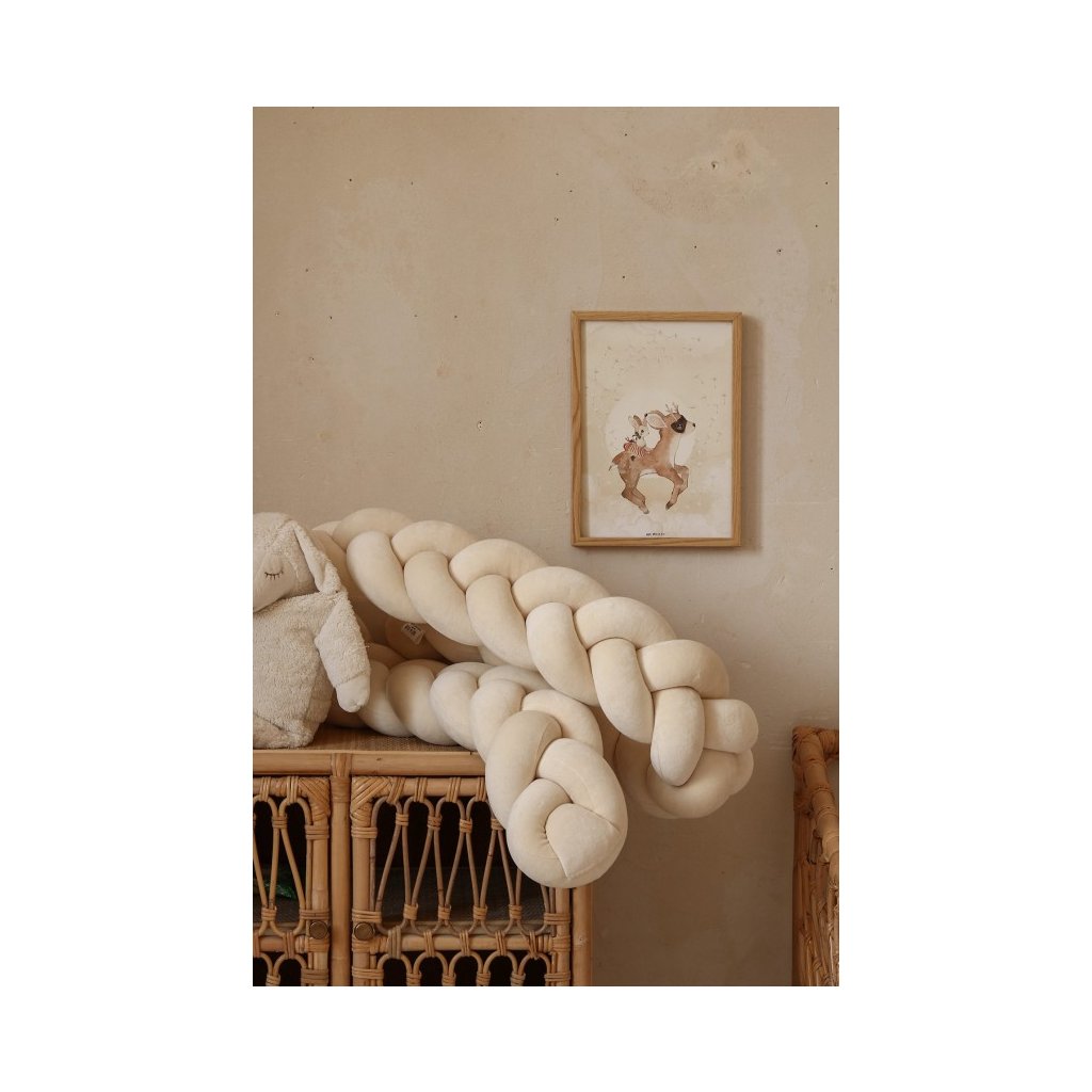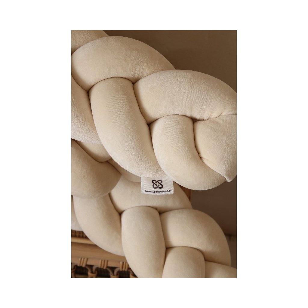 Plyšový mantinel do postieľky - trojitý pletenec smotanový