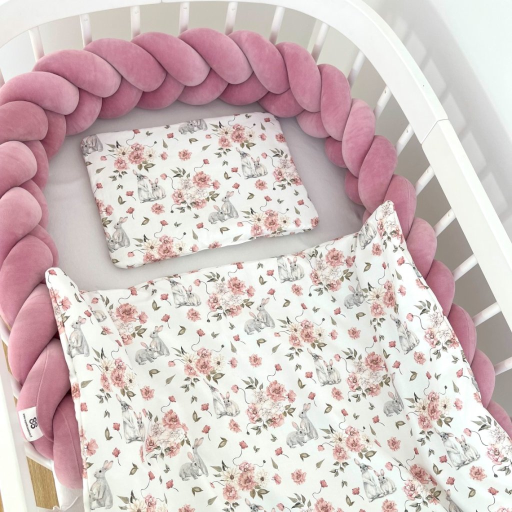 Plyšový mantinel do postieľky - trojitý pletenec tmavo staroružový