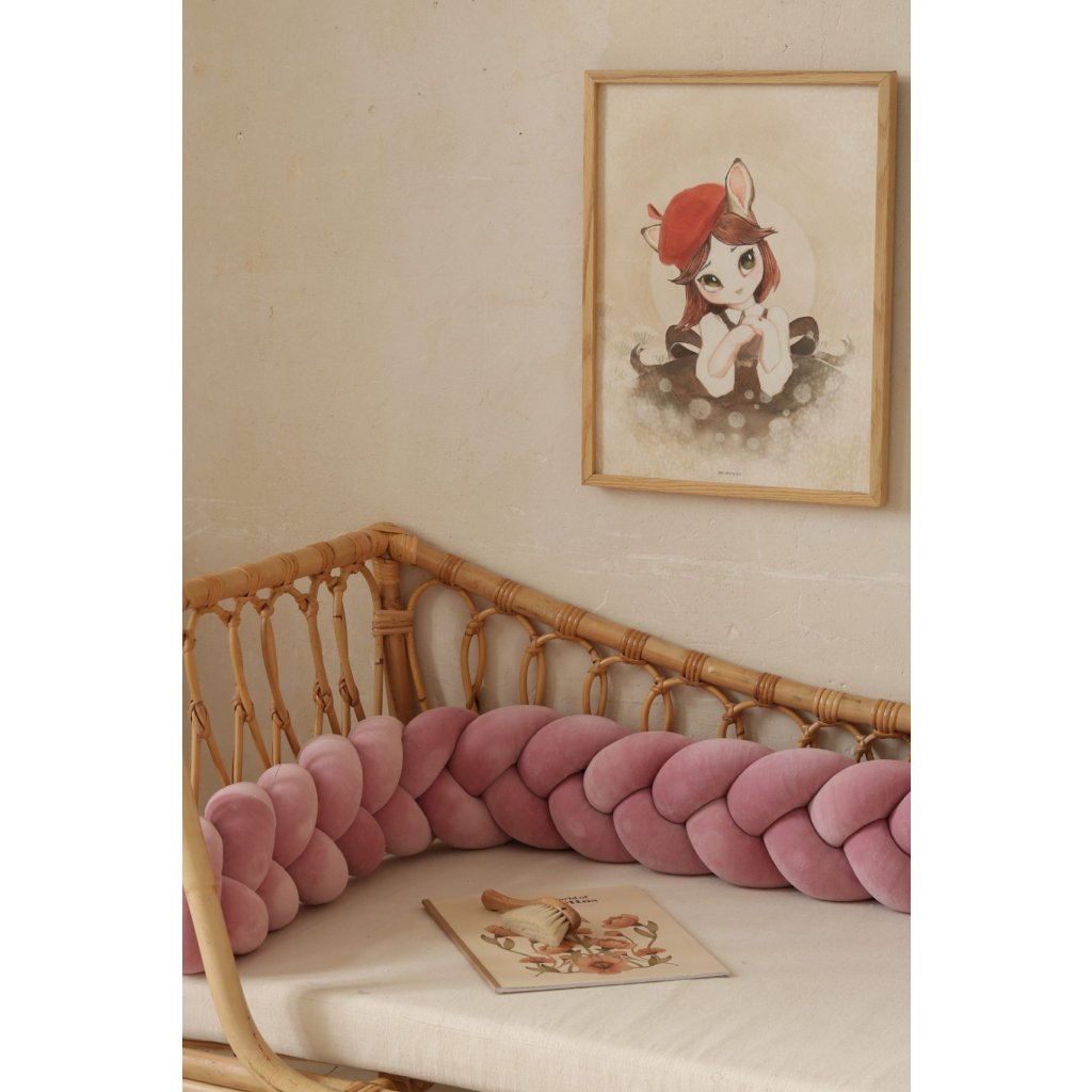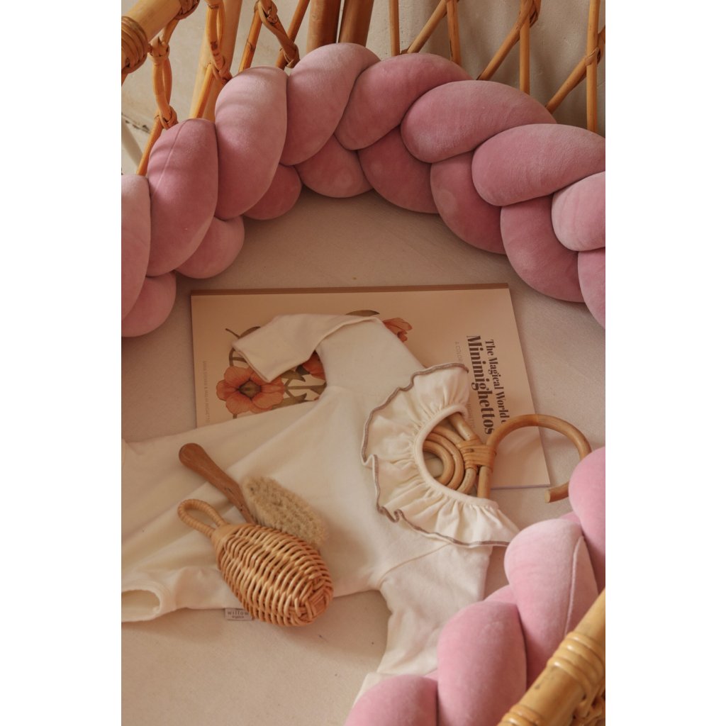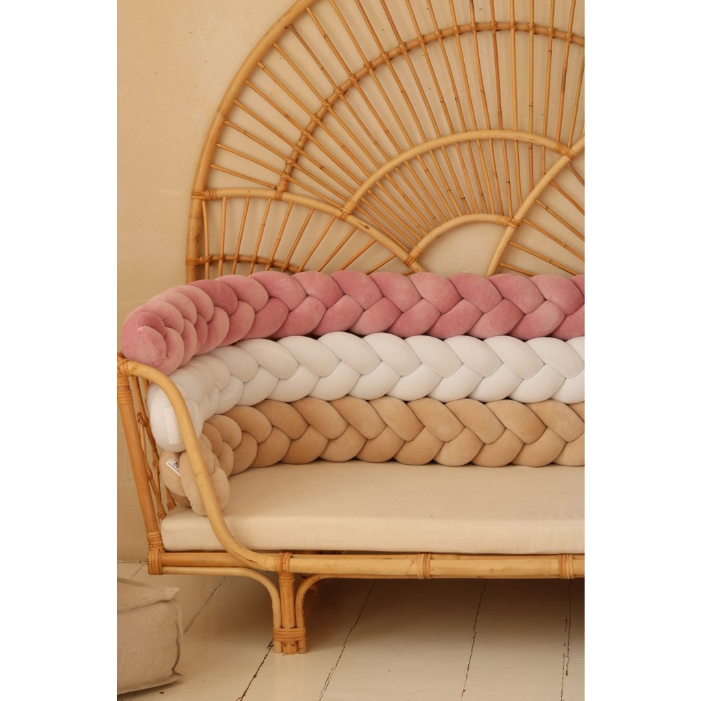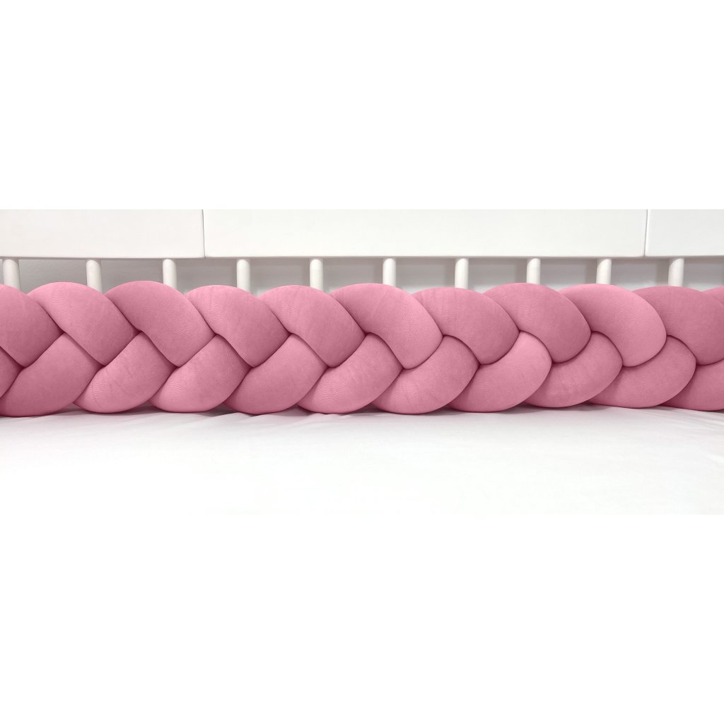 Plyšový ochranný zapletaný mantinel - pletenec trojitý slúži ako ochranca vášho dieťatka v postieľke a zároveň ako štýlový doplnok v detskej izbe. Pletenec má sadu ozdobných stúh na pripevnenie. Výška cca 15 cm, hrúbka cca 6 cm. Mantinel je dostupný v rôznych dĺžkach (od 120 cm do 400 cm). Všetky 3 pramene sú vyrobené z kvalitného Prémium bavlneného velúru (certifikát Oeko Tex Standard 100) a ručne spletené do vrkoča. Záruka najvyššej kvality – 100% Handmade. Farba: tmavo staroružová, číslo vo vzorkovníku: 10.