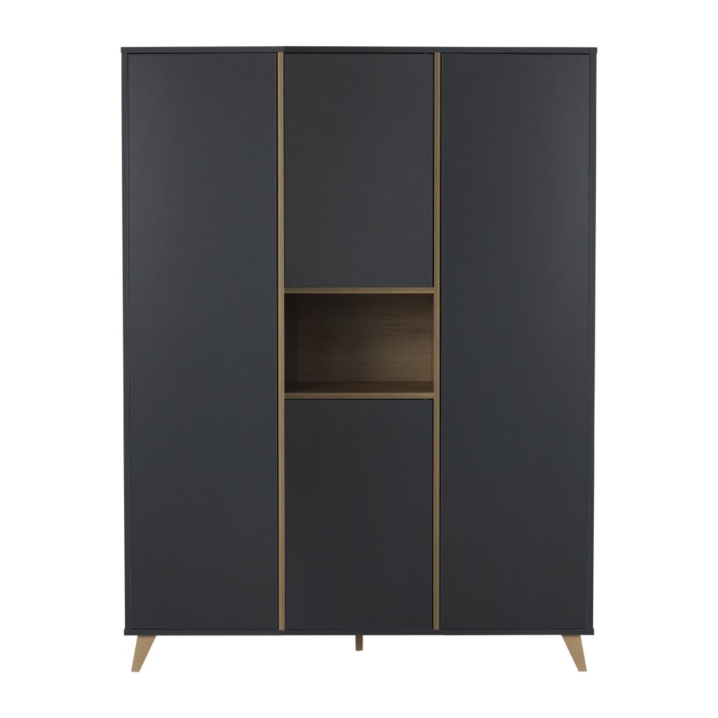 Detská trojdverová skriňa so škandinávskym nádychom. Disponuje veľkým úložným priestorom, v ktorom uskladníte detské oblečenie alebo zavesíte detské šaty a bundy. Farba skrine je antracitová.