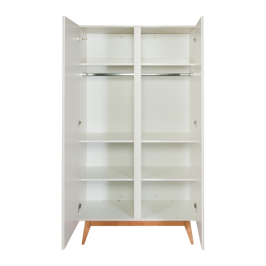 Moderná a dizajnová skriňa od belgického výrobcu Quax. Skriňa má 2 dvere vybavené push systémom. Vo vnútri je 6 malých poličiek a 1 závesná tyč. Dvere sa otvárajú skrytými úchytmi, ktoré sú vyfrézované na dvierkach.