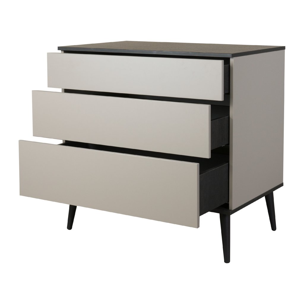 Elegantná detská komoda v kombinácii ebenového dreva a s priestrannými zásuvkami vybavená otváraním na push systém. Užitočná komoda do detskej izby na odkladanie oblečenia, ktoré chránia veci Vášho bábätka pred prachom. Ku komode odporúčame si dokúpiť prebaľovací rám a prebaľovaciu podložku pre pohodlné prebaľovanie bábätka.