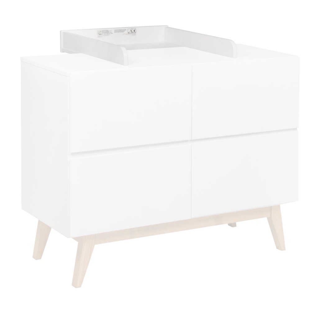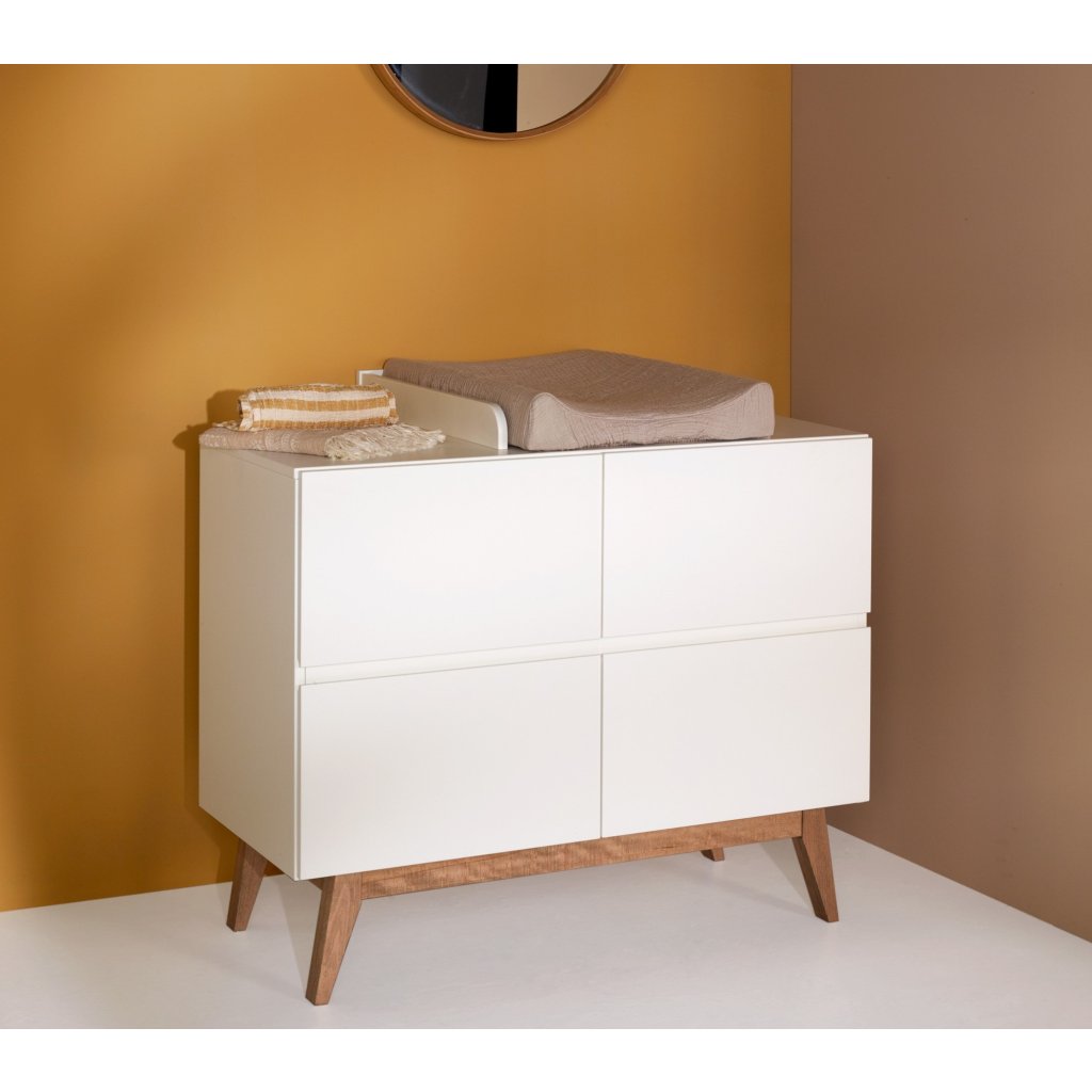 Praktická dizajnová komoda so štyrmi veľkými zásuvkami s možnosťou dokúpenia si prebalovacieho rámu na komodu.