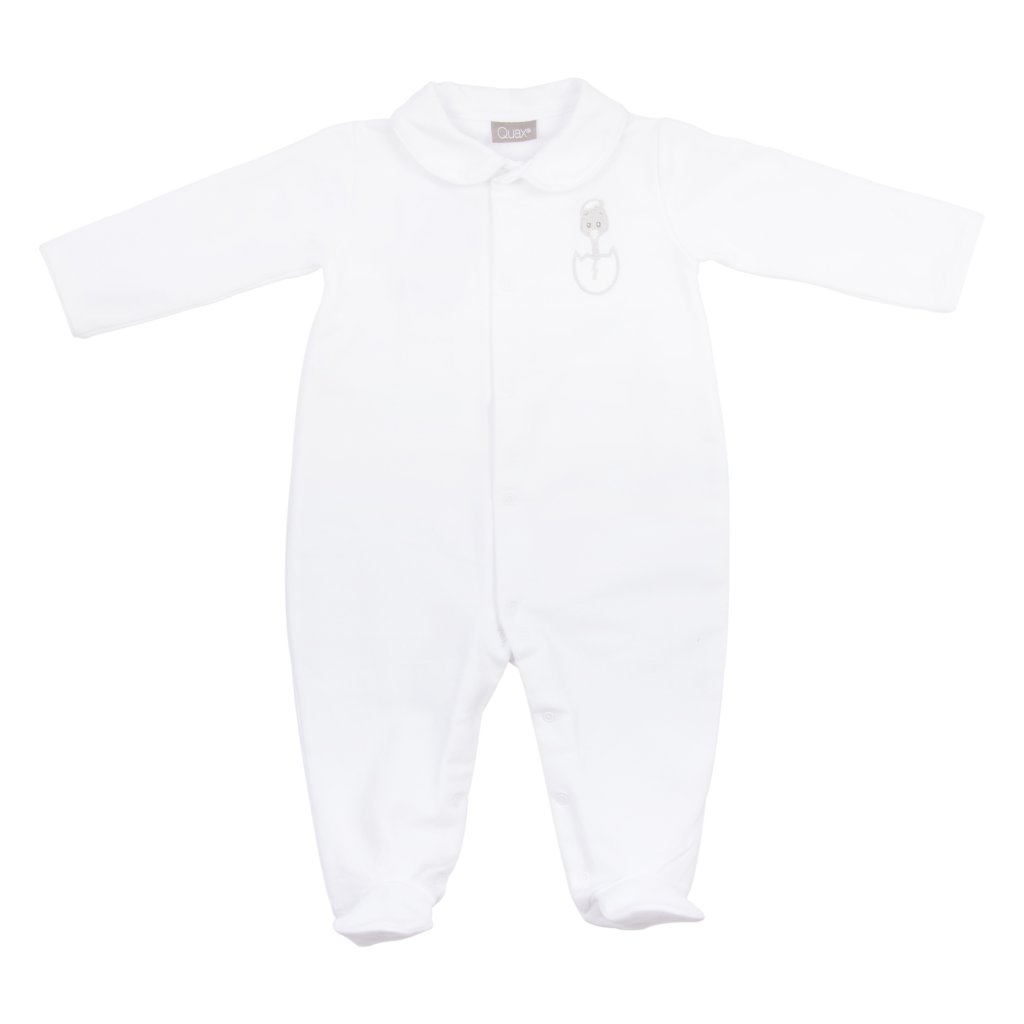 Zateplené dupačky pre predčasne narodené bábätko z veľmi jemnej príjemnej bavlny v bielej farbe vo veľkosti 46. Predné zapínanie uľahčuje prezliekanie a prebaľovanie bábätka. Materiál: 95% bavlna, 5% elastan.