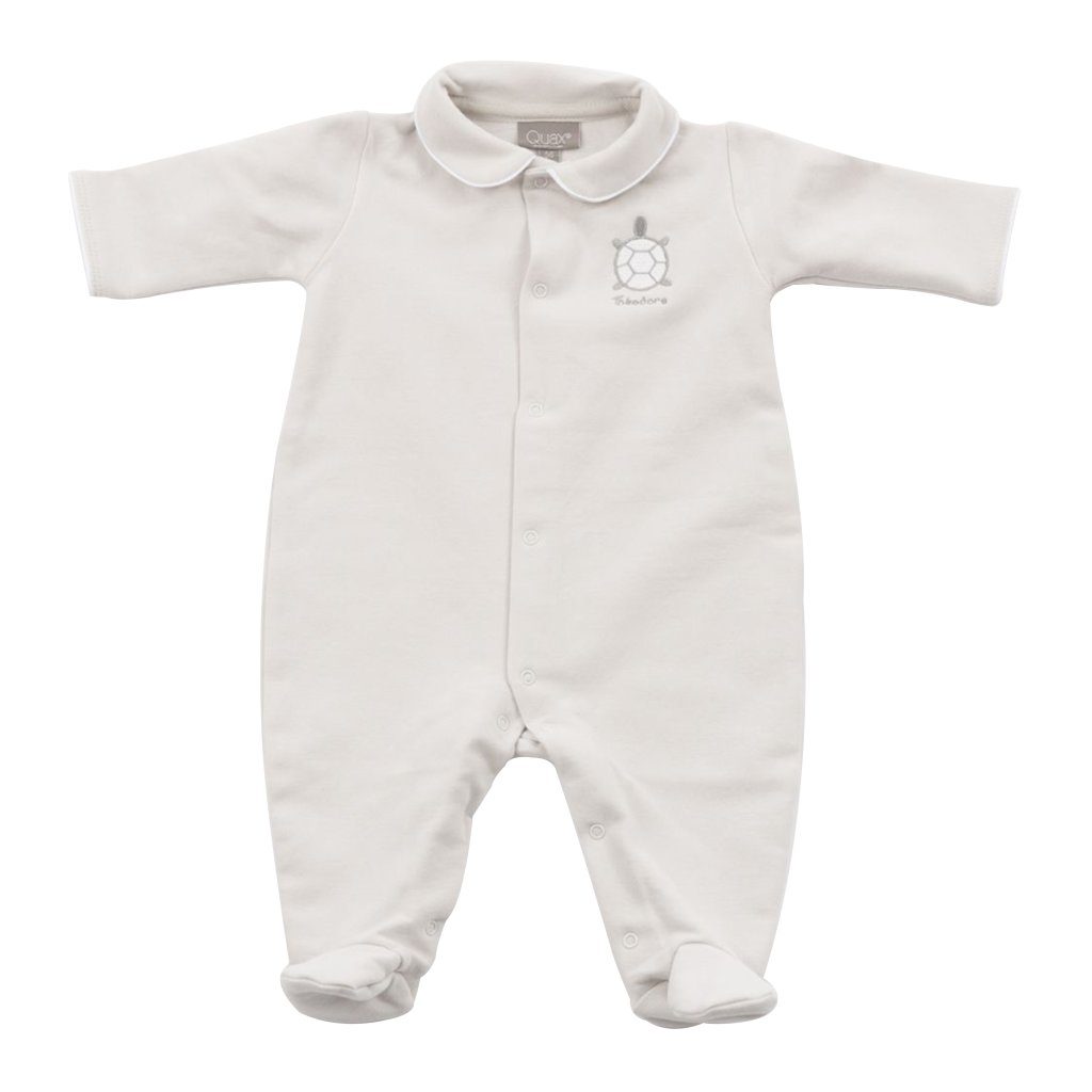 Zateplené dupačky pre predčasne narodené bábätko z veľmi jemnej príjemnej bavlny v jemnej bledošedej farbe vo veľkosti 46. Predné zapínanie uľahčuje prezliekanie a prebaľovanie bábätka.  Materiál: 95% bavlna, 5% elastan.