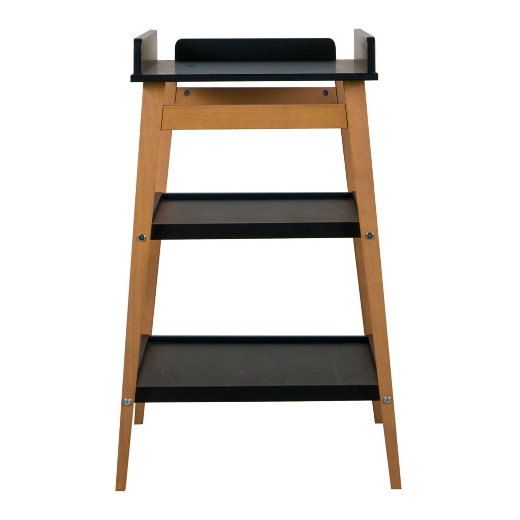 Dizajnový prebaľovací pult s dvoma pevnými poličkami do váhy 11 kg dieťaťa. Tento pult je bezpečným a pohodlným miestom pre bábätko, ktoré uľahčuje nielen prebaľovanie, ale aj celkovú starostlivosť o dieťa. Farba: poličky sú čierne a nohy prírodné.
