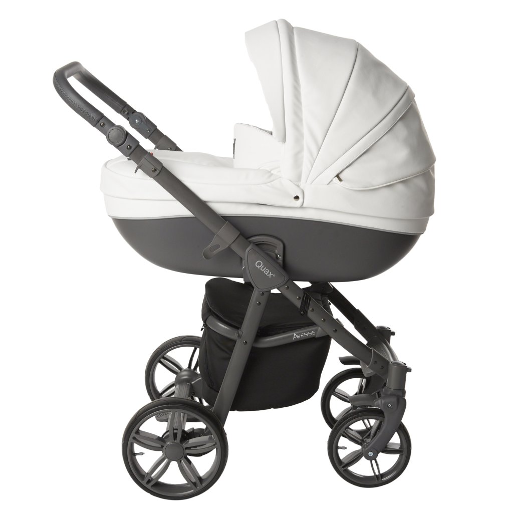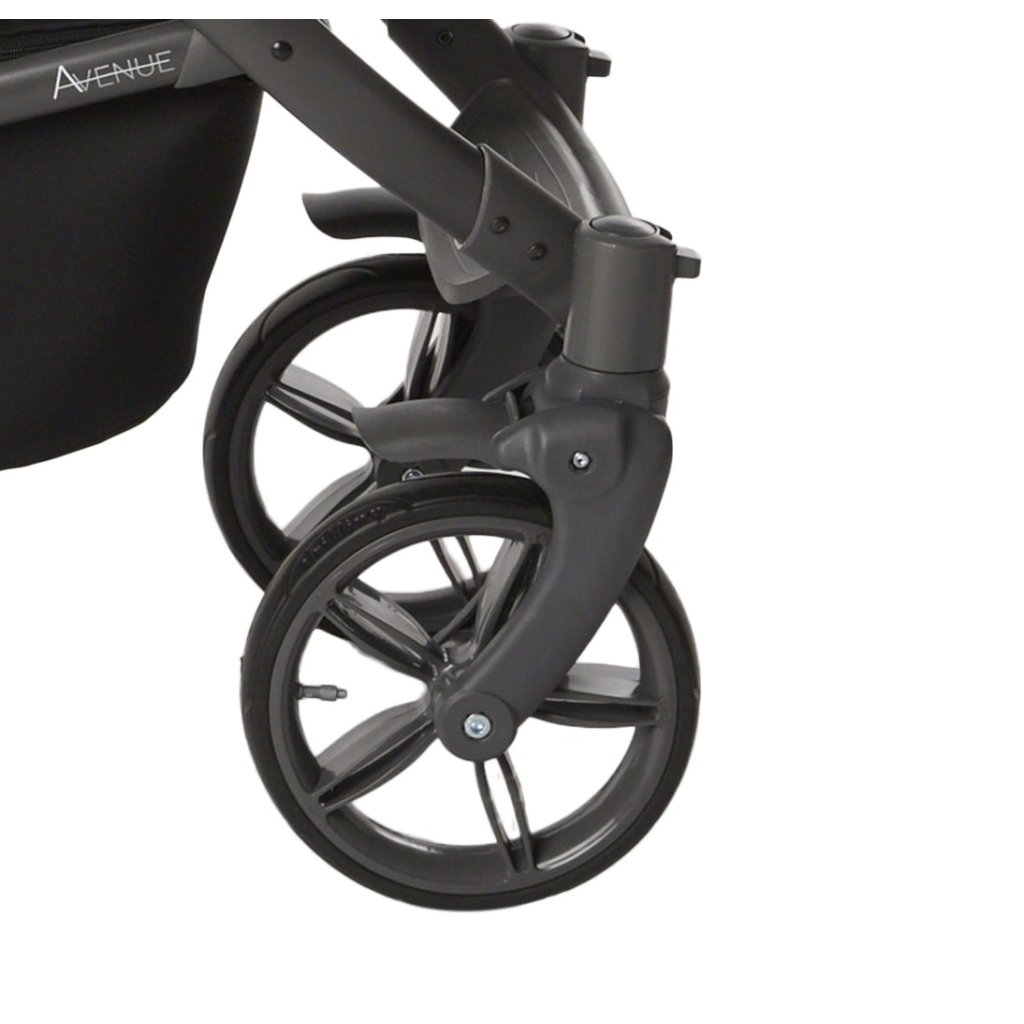 Set obsahuje 2 predné malé kolesá na kočík Quax Avenue, vhodné k šedej konštrukcii kočíka.