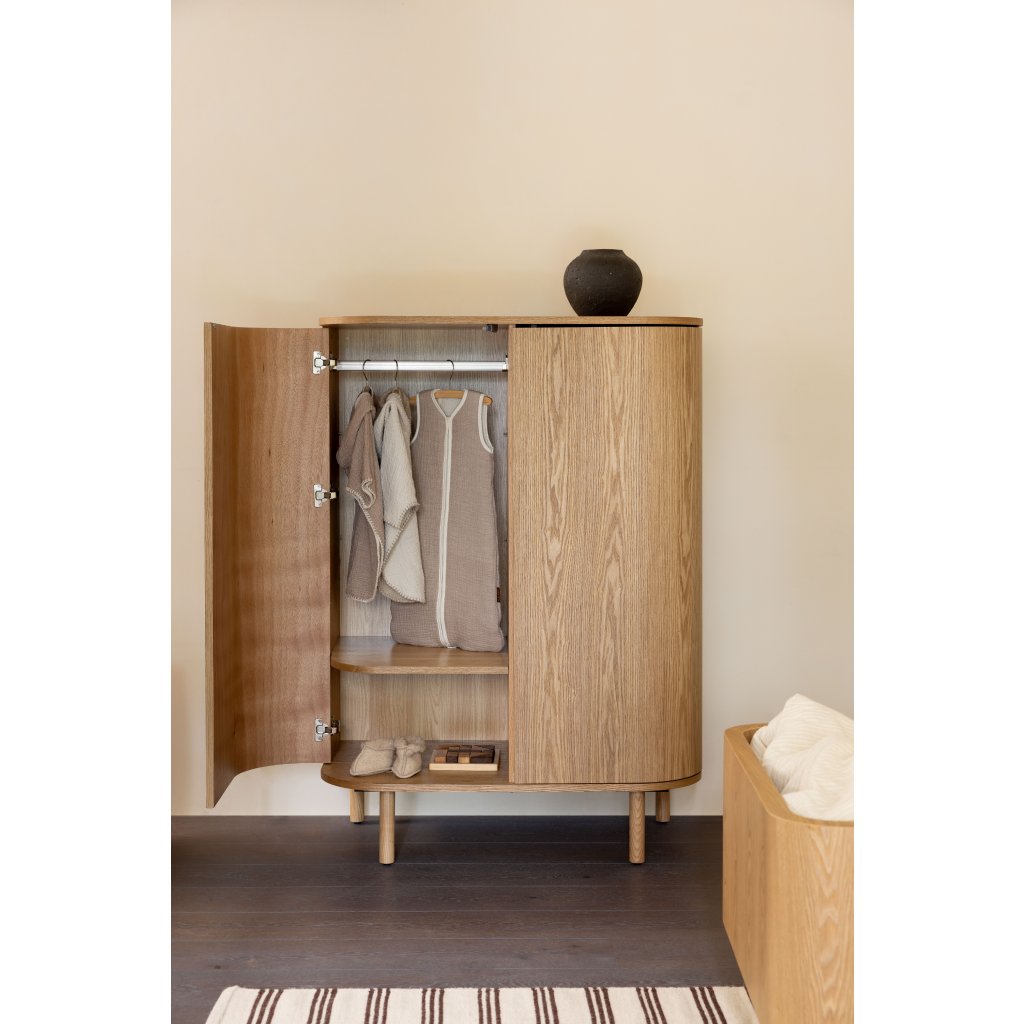 Nadčasový dizajn s nežnými krivkami dodáva skrini eleganciu, ktorá sa hodí nielen do detskej izby, ale aj do iných obytných priestorov.