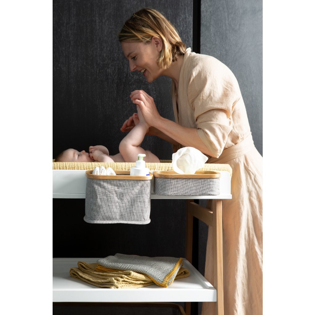 Ľahký hranatý bambusový košík dostupný vo viacerých rozmeroch. Využite košíky k prebalovaciemu pultu na odkladanie všetkého potrebného k prebalovaniu.