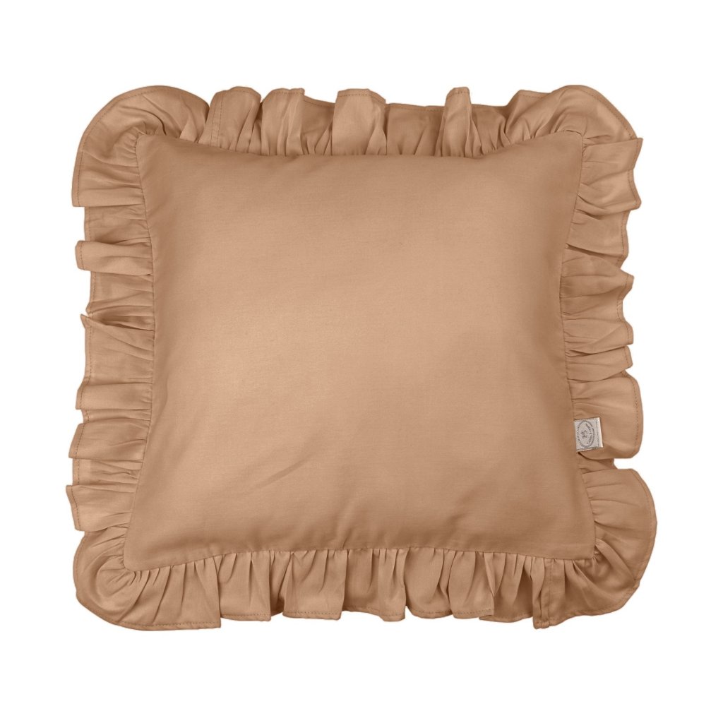 Simply Glamour vankúš s volánikmi zo saténovej bavlny s výplňou - čokoládová