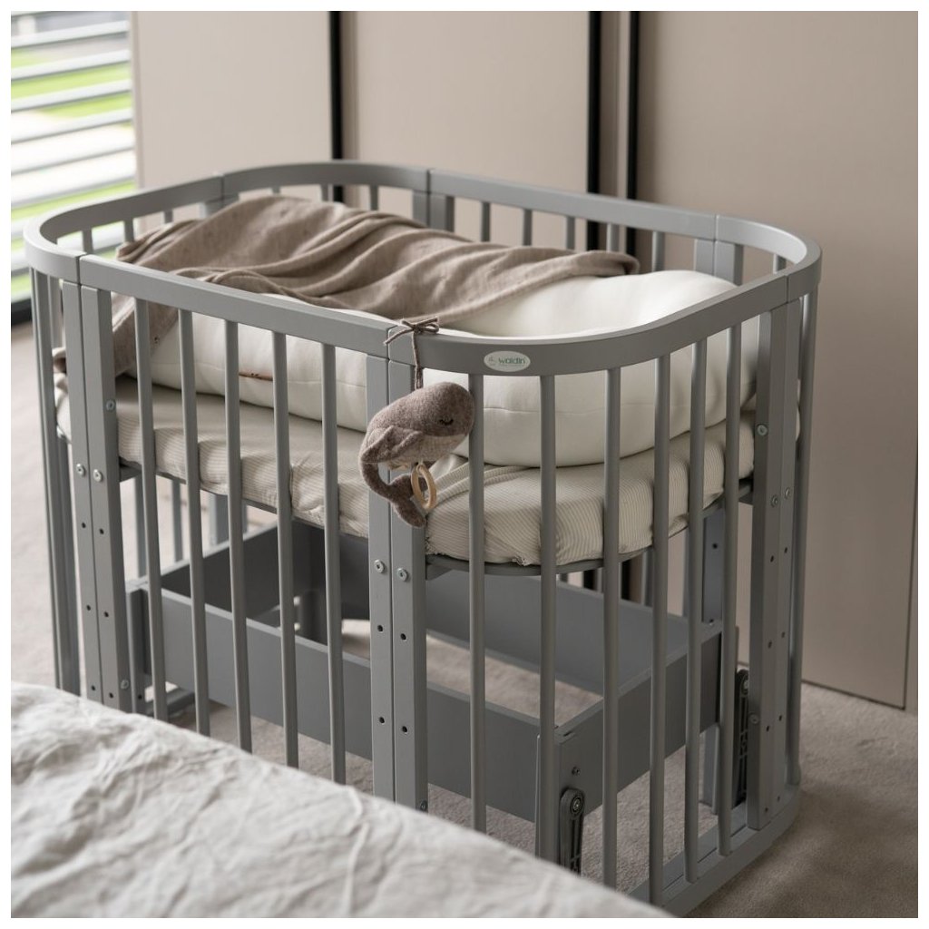 Jedinečná multifunkčná drevená postieľka 5v1 s hojdacím mechanizmom a s matracom, ktorá rastie s vašim dieťaťom. Používa sa ako prístelka, kolíska, postieľka, ohrádka a neskôr ako písací stôl. Možnosť nastavenia roštu do ľubovoľnej výšky. Je vyrobená zo starostlivo vybraných materiálov a zaručuje vášmu drobcovi bezpečnosť a pohodlie. Vyrobená z bukového dreva.