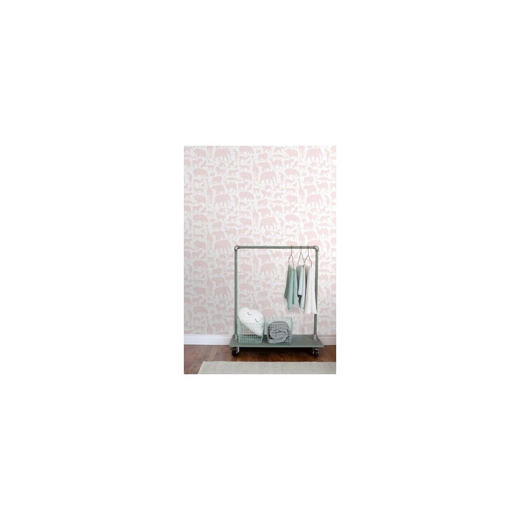 Tapeta so zvieratkami je ideálna na vytvorenie detskej izbičky s motívom džungle. Dostupná vo farbách: mentolová, ružová a šedá.