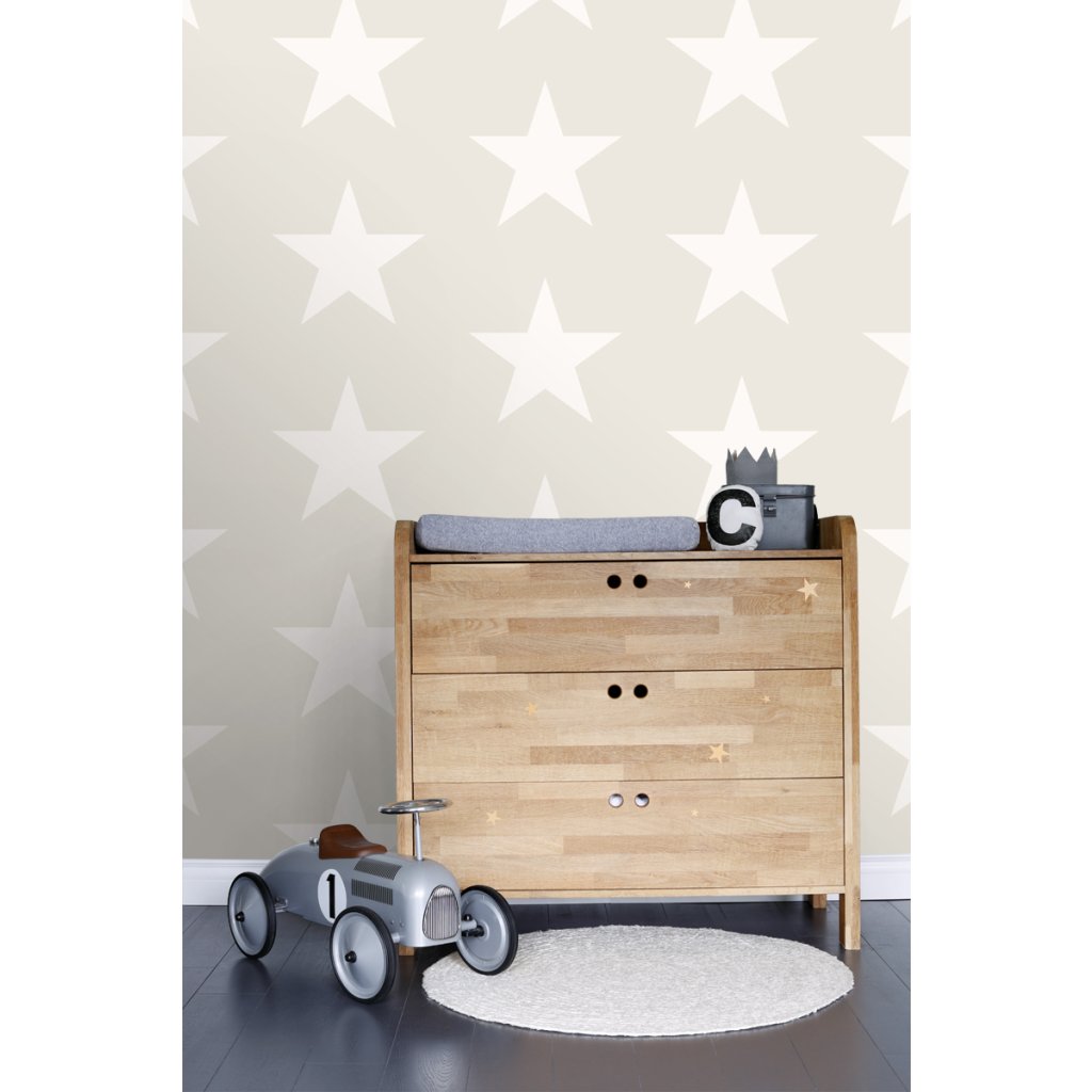 S touto roztomilou tapetou bude váš drobček spať pod hviezdami. Táto fantastická tlač na tapety v béžovej farbe je nevyhnutnosťou pre krásny prízvuk a dodáva detskej izbe hrejivú a očarujúcu atmosféru. Sladké sny!