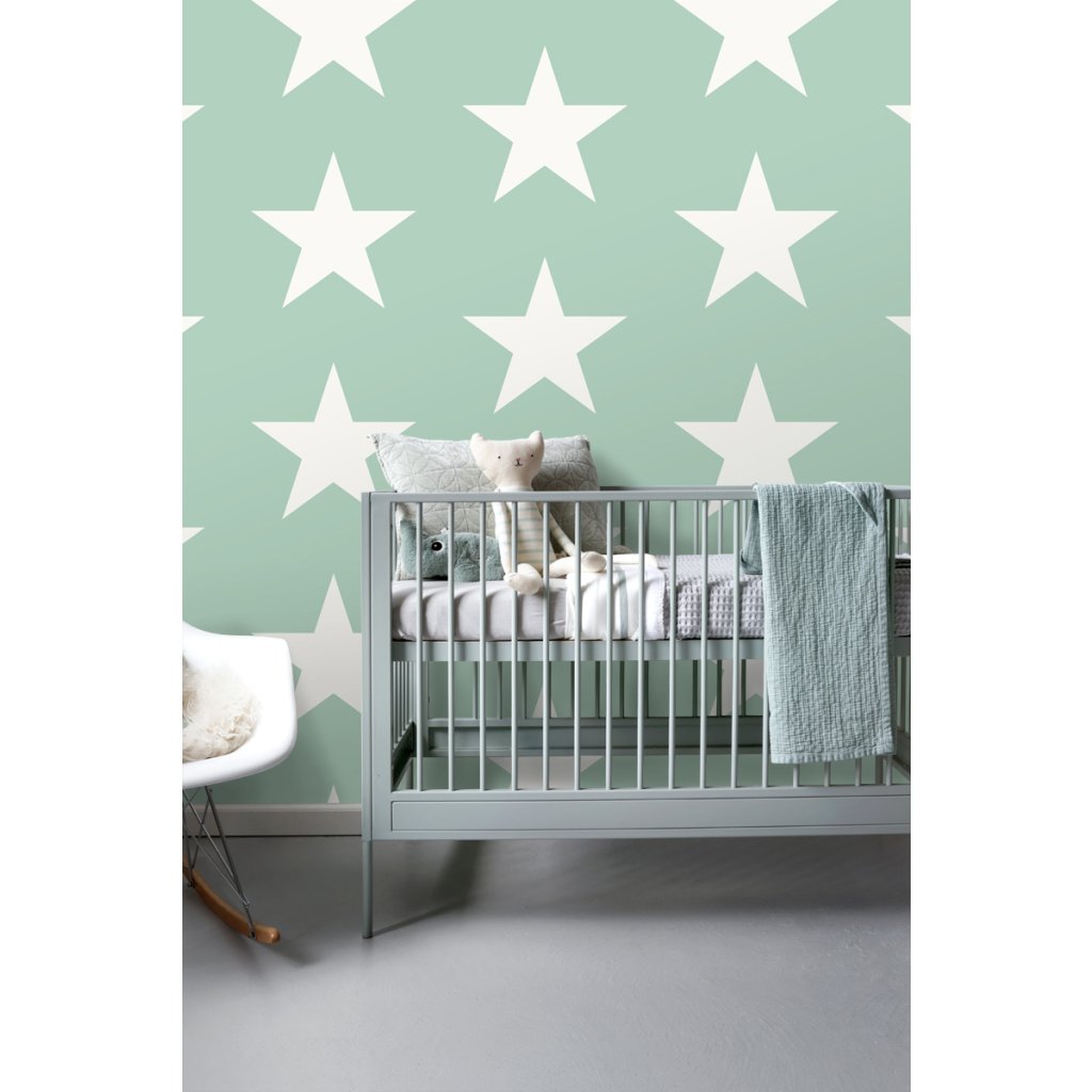 S touto roztomilou tapetou bude váš drobček spať pod hviezdami. Táto fantastická tlač na tapety v mentolovej farbe je nevyhnutnosťou pre krásny prízvuk a dodáva detskej izbe hrejivú a očarujúcu atmosféru. Sladké sny!