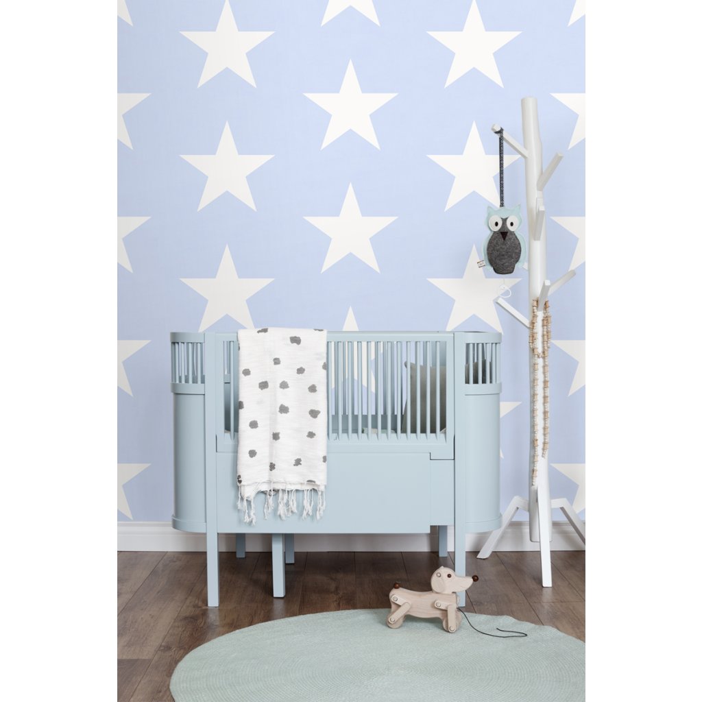 S touto roztomilou tapetou bude váš drobček spať pod hviezdami. Táto fantastická tlač na tapety v svetlomodrej farbe je nevyhnutnosťou pre krásny prízvuk a dodáva detskej izbe hrejivú a očarujúcu atmosféru. Sladké sny!