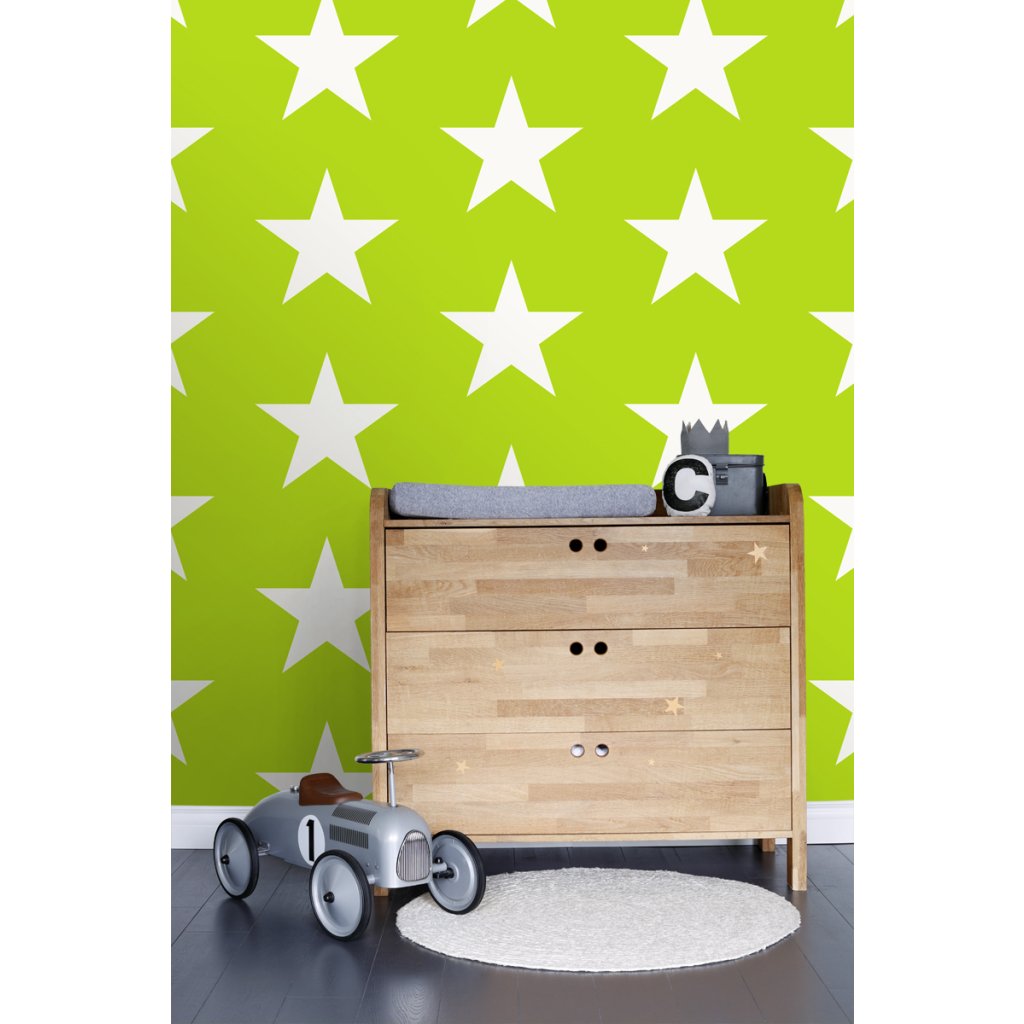 S touto roztomilou tapetou bude váš drobček spať pod hviezdami. Táto fantastická tlač na tapety v limetkovo zelenej farbe je nevyhnutnosťou pre krásny prízvuk a dodáva detskej izbe hrejivú a očarujúcu atmosféru. Sladké sny!