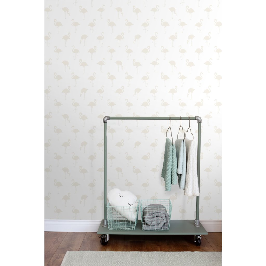 Táto sladká tapeta s plameniakmi v striebornej a bielej farbe vnáša do miestnosti príjemnú, veselú a živú atmosféru.