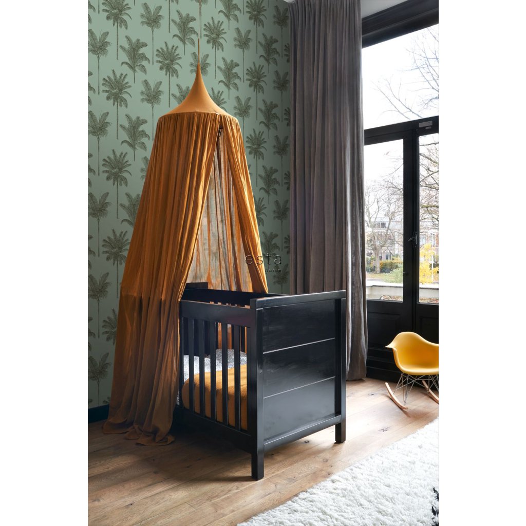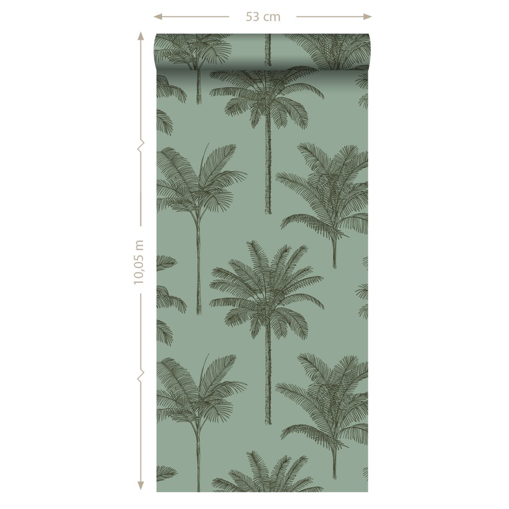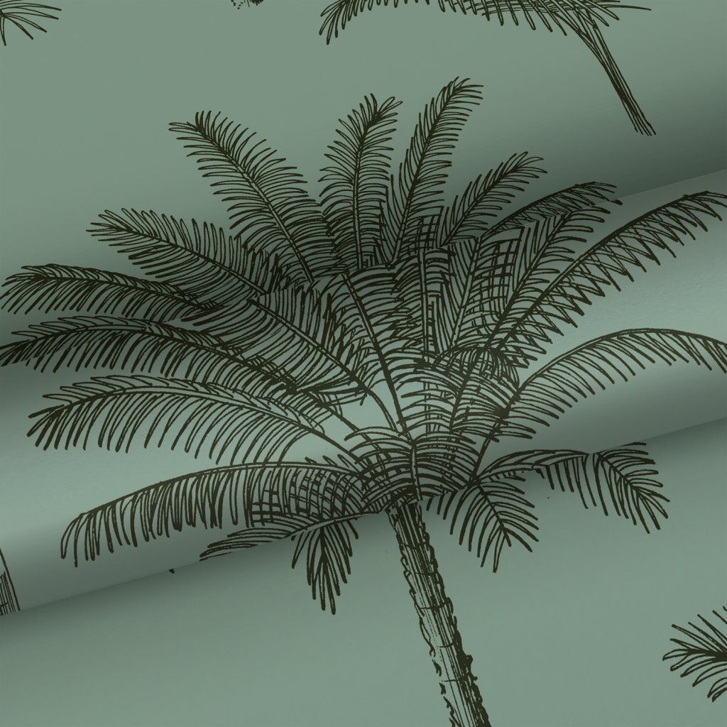 Ozdobte svoje steny touto nádhernou exotickou potlačou s palmami v šedozelenej farbe a vytvorte si vlastnú mestskú džungľu. Dostupná v rôznych farbách.