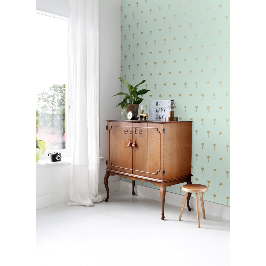 Tapeta Palm trees mint green and gold