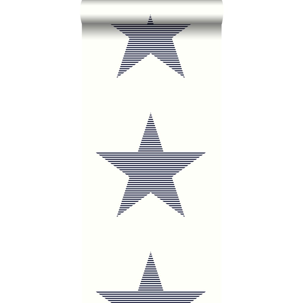 Tapeta stripes Big Stars dark blue on white