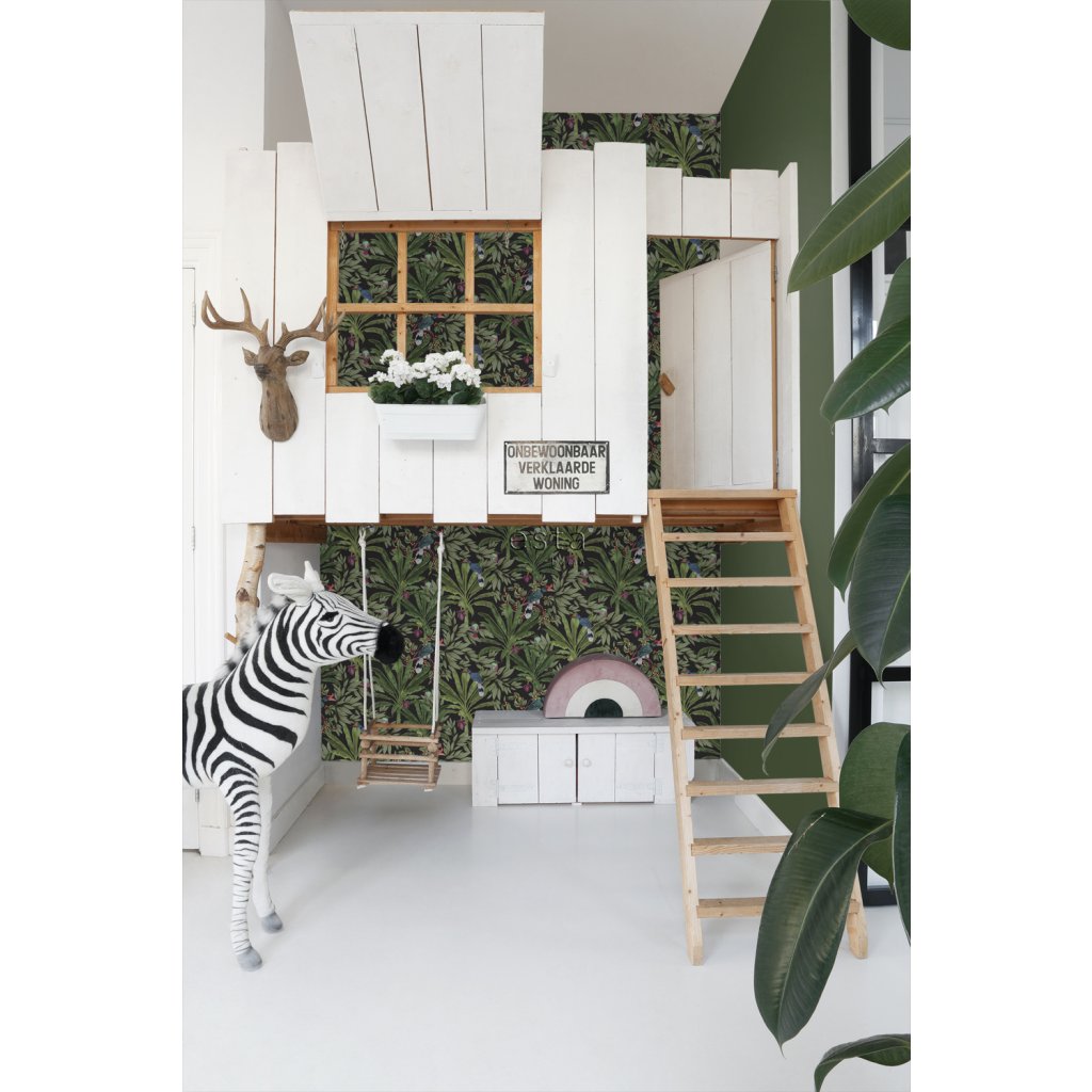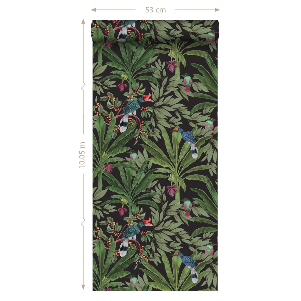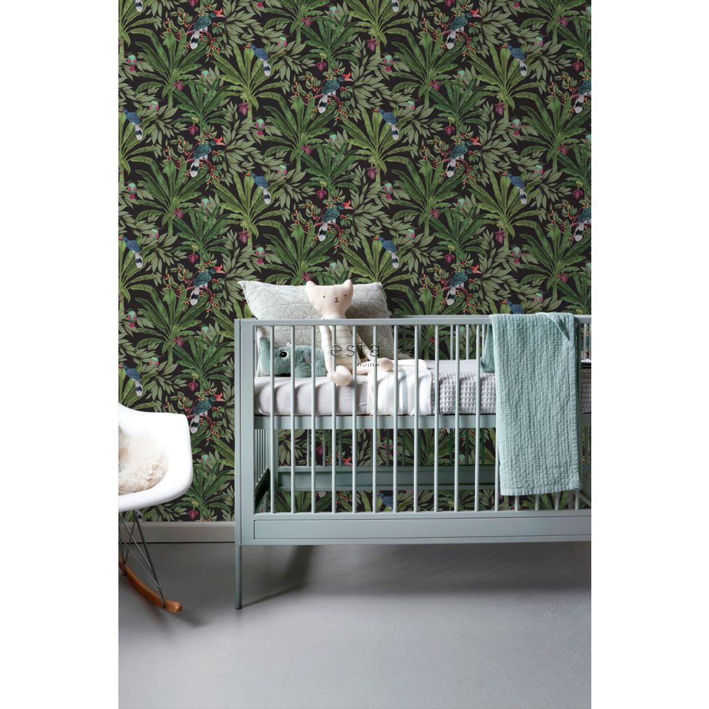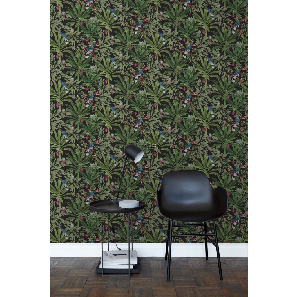 Ozdobte svoje steny touto nádhernou exotickou potlačou s tropickými listami džungle a rajskými vtákmi a vytvorte si vlastnú mestskú džungľu. Táto tapeta je ideálna na vytvorenie steny s prvkami a dodáva vašej miestnosti živú, veselú a tropickú atmosféru. Dostupná v rôznych farbách.