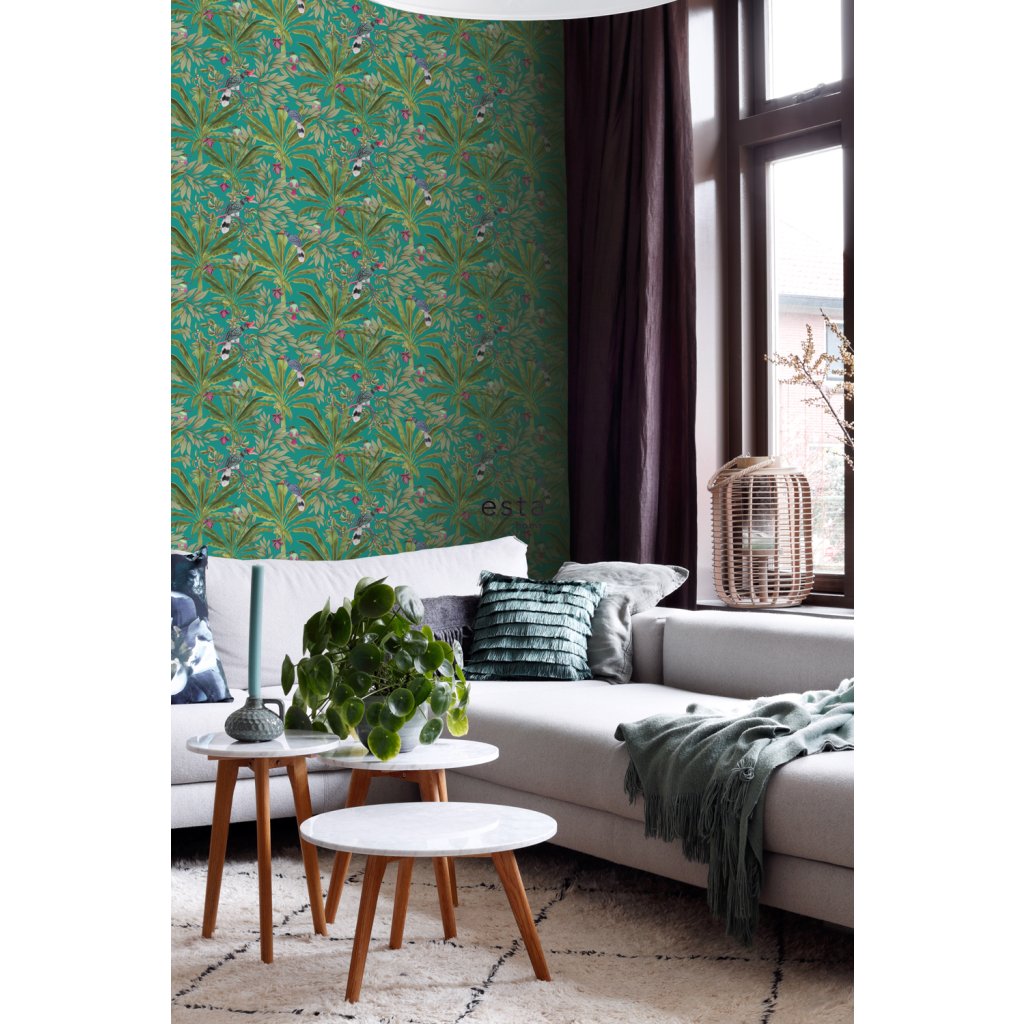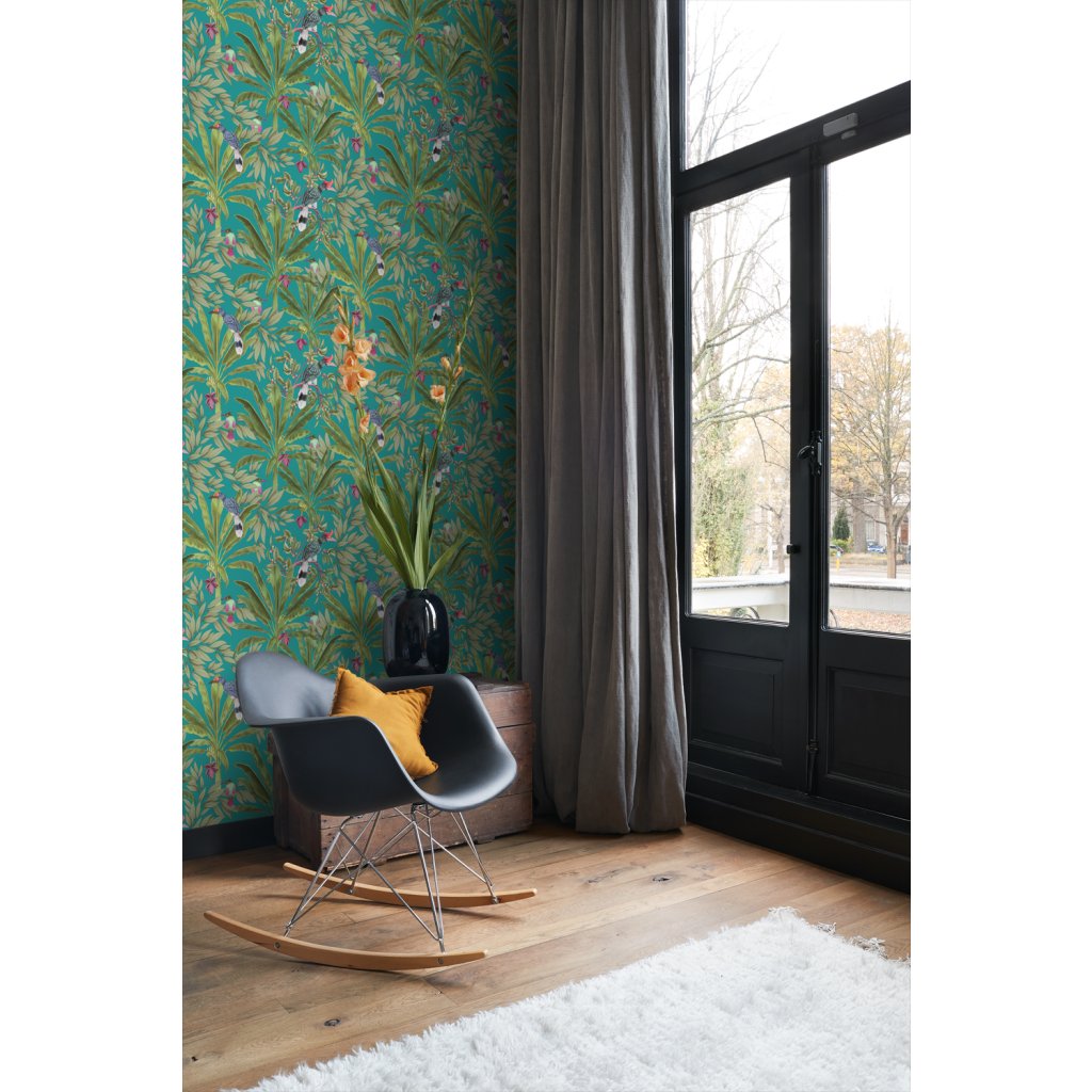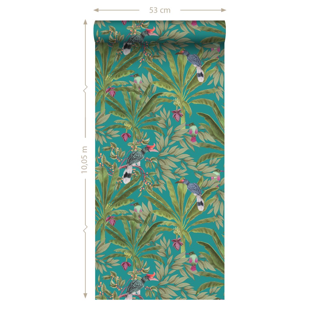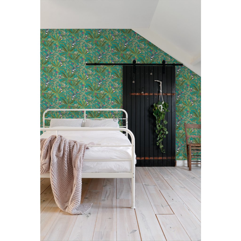 Ozdobte svoje steny touto nádhernou exotickou potlačou s tropickými listami džungle a rajskými vtákmi a vytvorte si vlastnú mestskú džungľu. Táto tapeta je ideálna na vytvorenie steny s prvkami a dodáva vašej miestnosti živú, veselú a tropickú atmosféru. Dostupná v rôznych farbách.