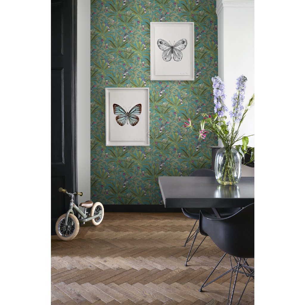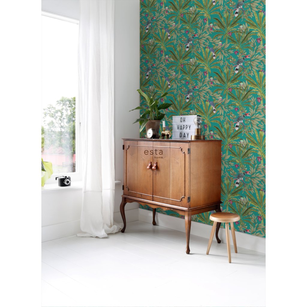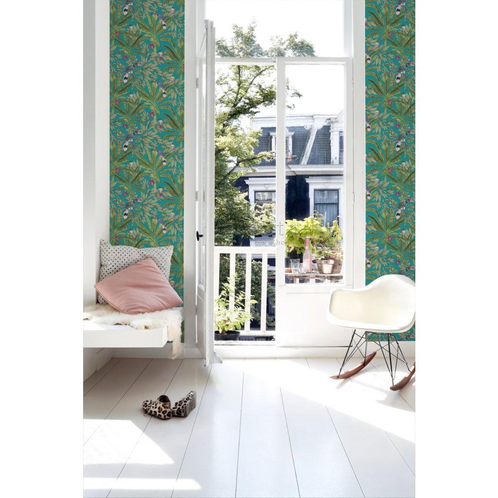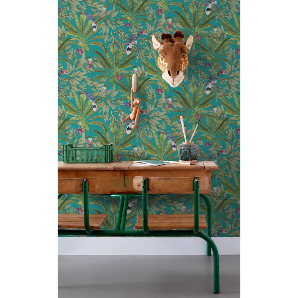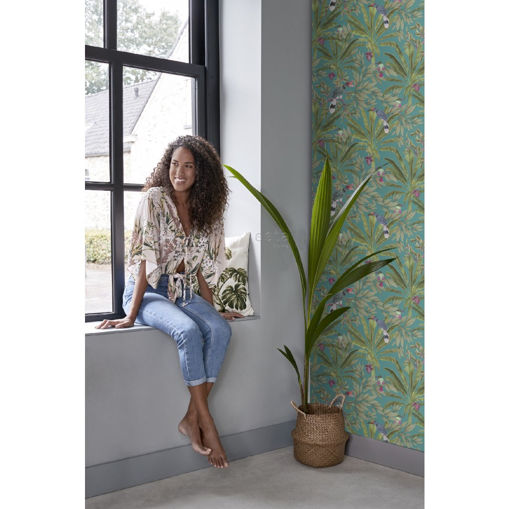 Ozdobte svoje steny touto nádhernou exotickou potlačou s tropickými listami džungle a rajskými vtákmi a vytvorte si vlastnú mestskú džungľu. Táto tapeta je ideálna na vytvorenie steny s prvkami a dodáva vašej miestnosti živú, veselú a tropickú atmosféru. Dostupná v rôznych farbách.
