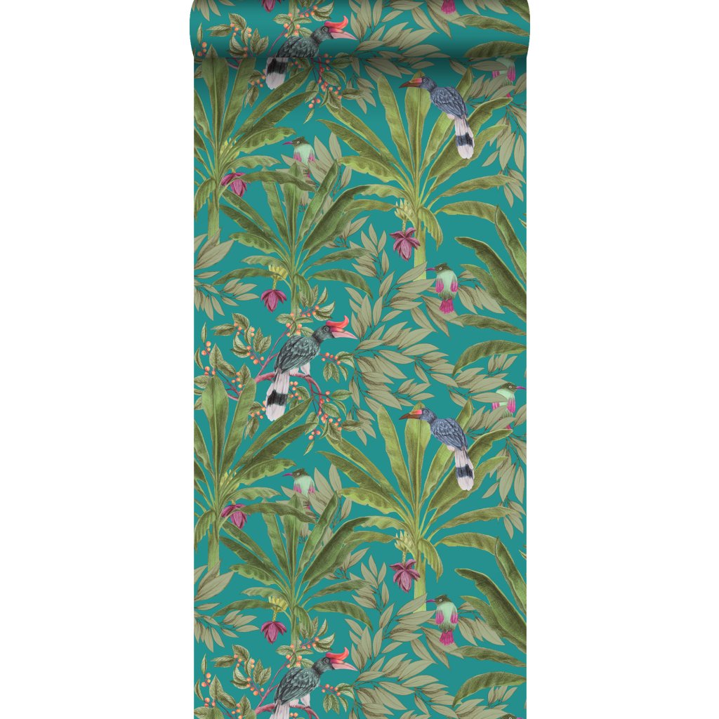 Tapeta tropical jungle petrol blue