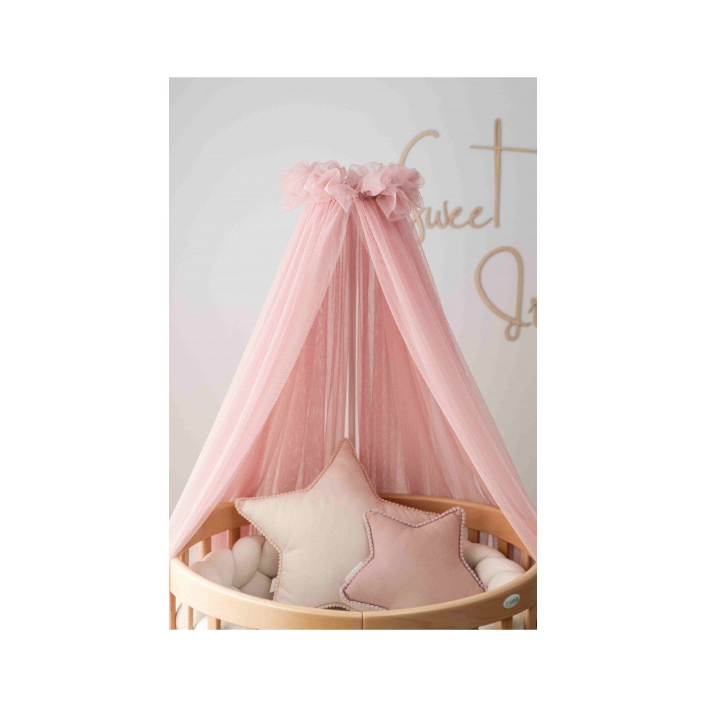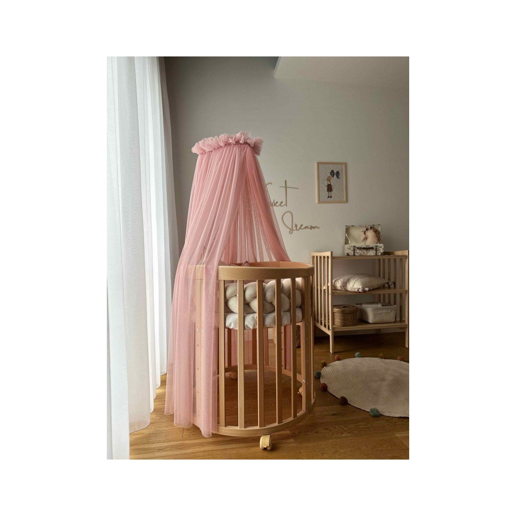 Elegantný hustý baldachýn je elegantný doplnok, vďaka ktorému bude detská postieľka útulnejšia a dieťa sa bude cítiť bezpečnejšie. Súčasťou balenia je stojan na uchytenie k postieľke a závoj. Vhodný na akúkoľvek postieľku vďaka univerzálnemu systému uchytenia.