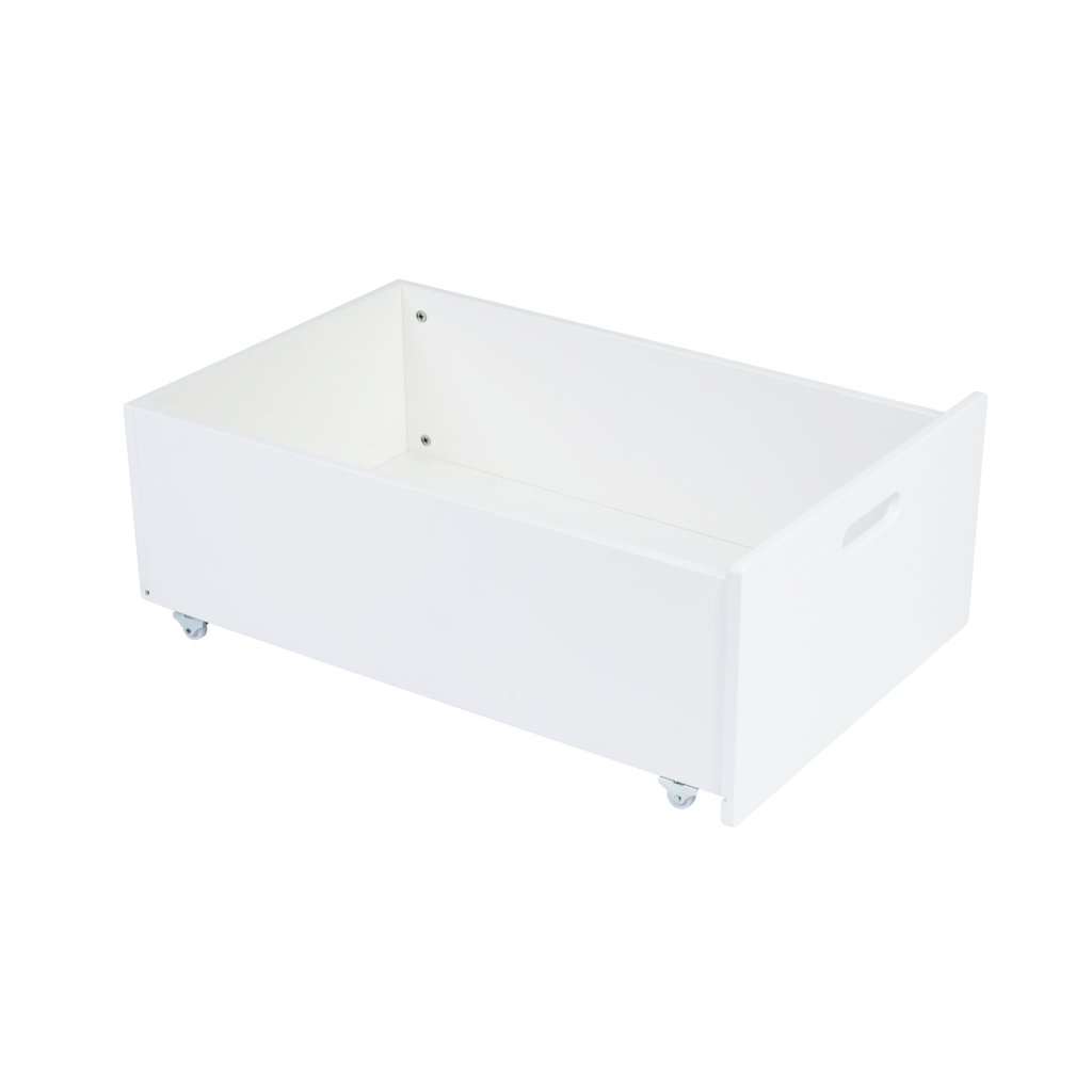 Priestranný úložný box na kolieskach k detskej rastúcej oválnej postieľke SmartGrow a SweetDream. Zásuvka vám pomôže optimálne využiť priestor pod detskou postieľkou, ktorý by inak ostal prázdny. Do boxu si môžu deti odkladať hračky alebo v ňom môžete mať odložené vankúšiky a deky.